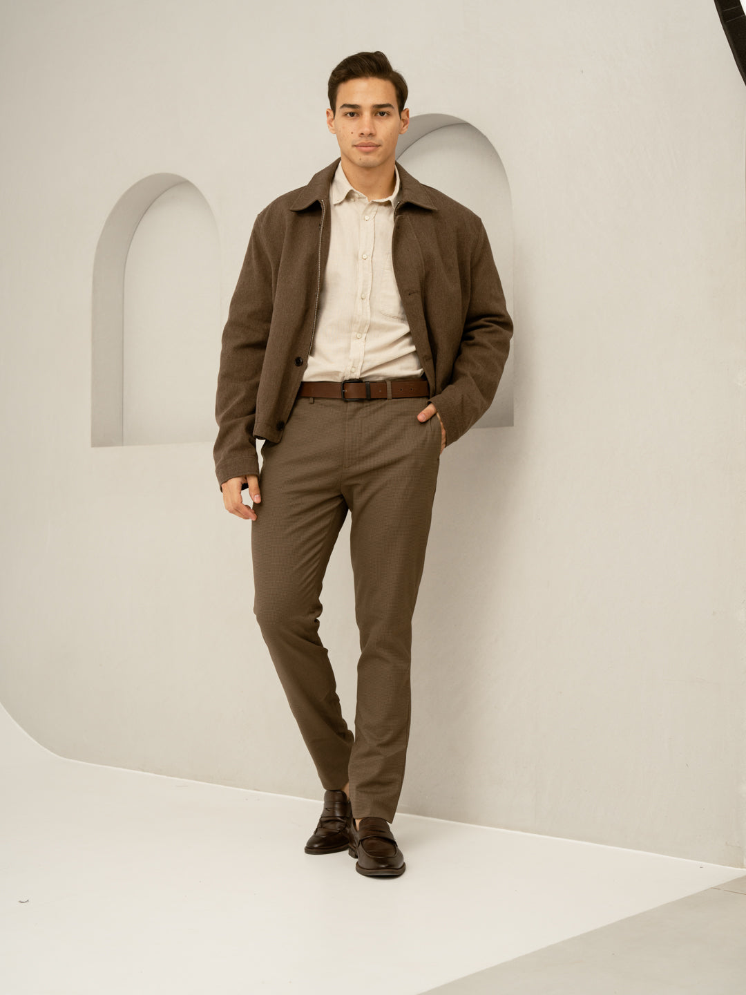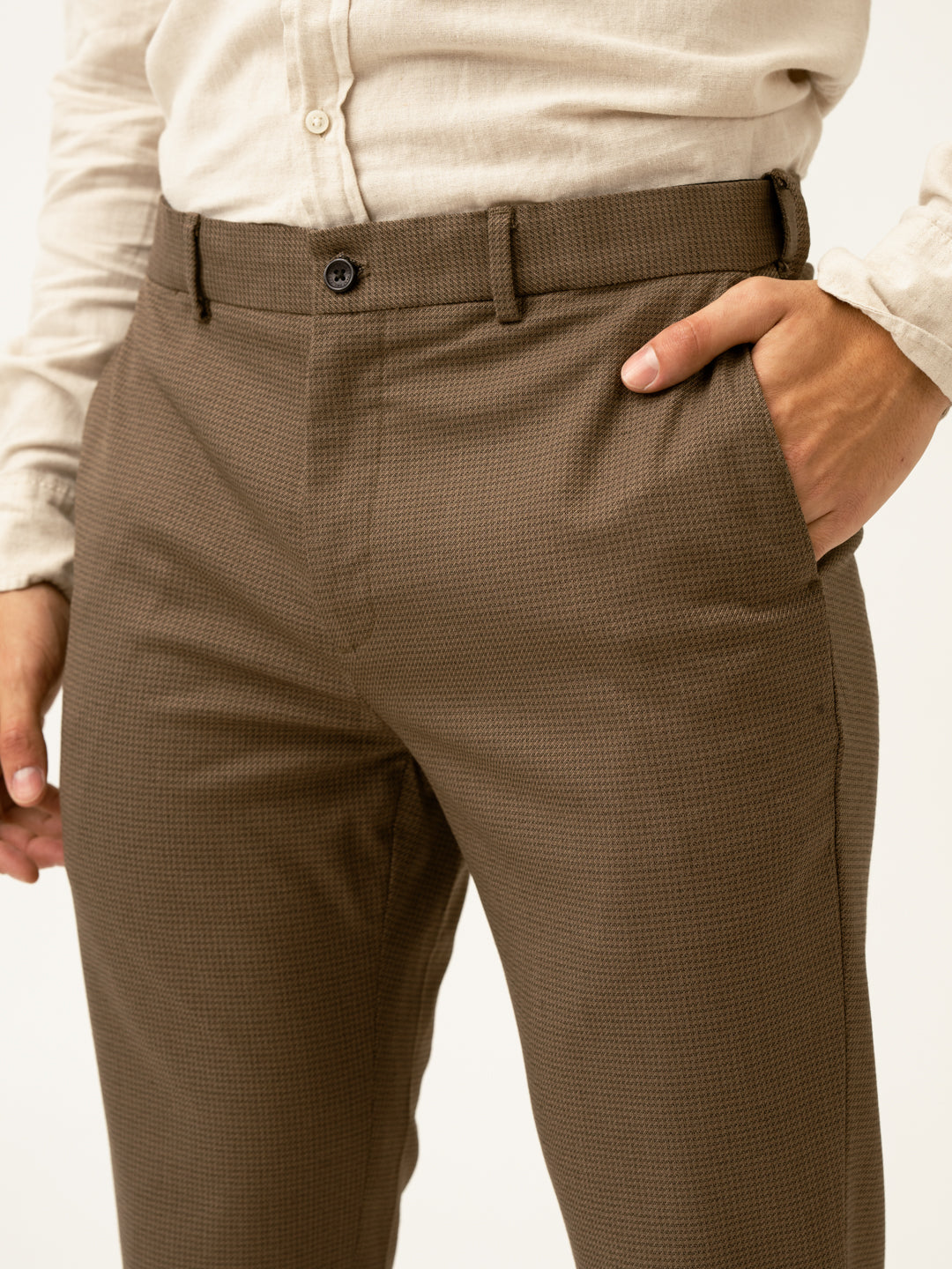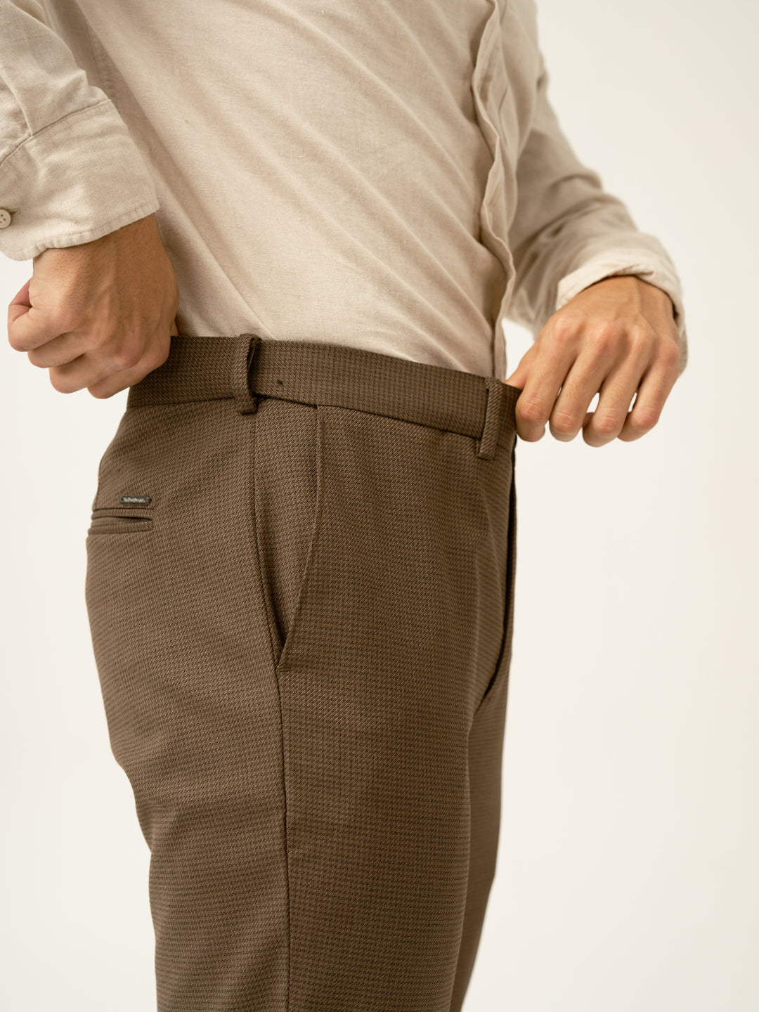 Acon Brown Textured Formal Pants