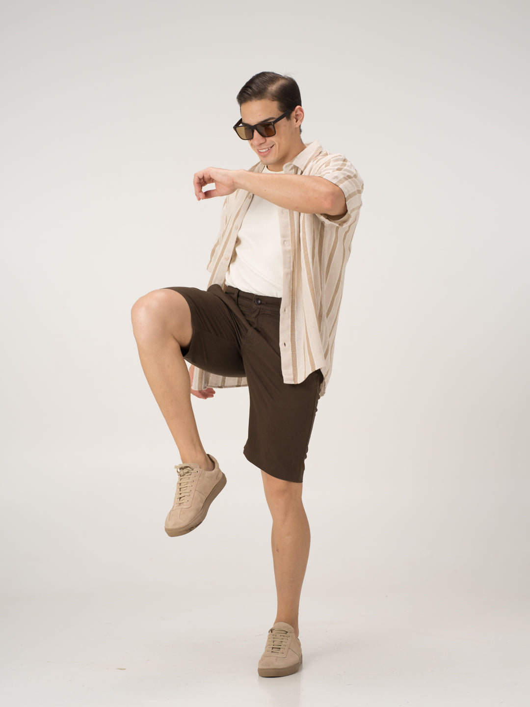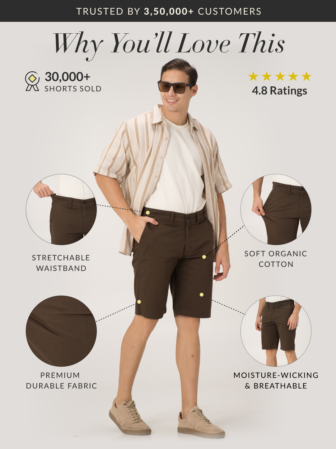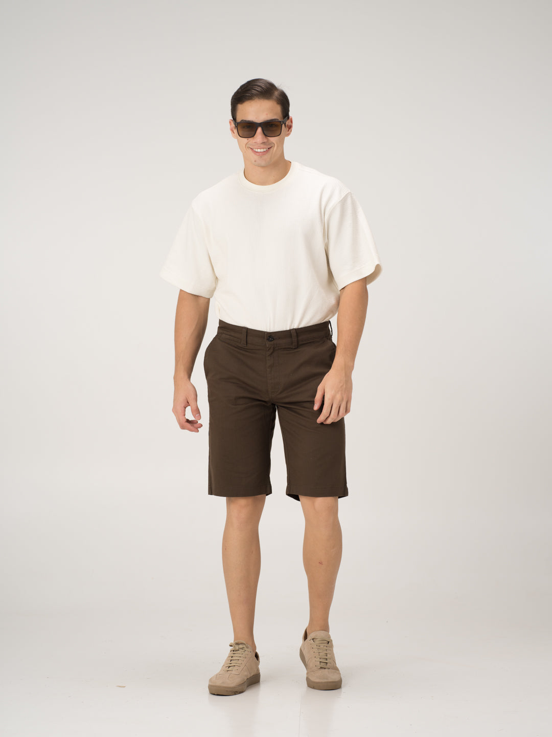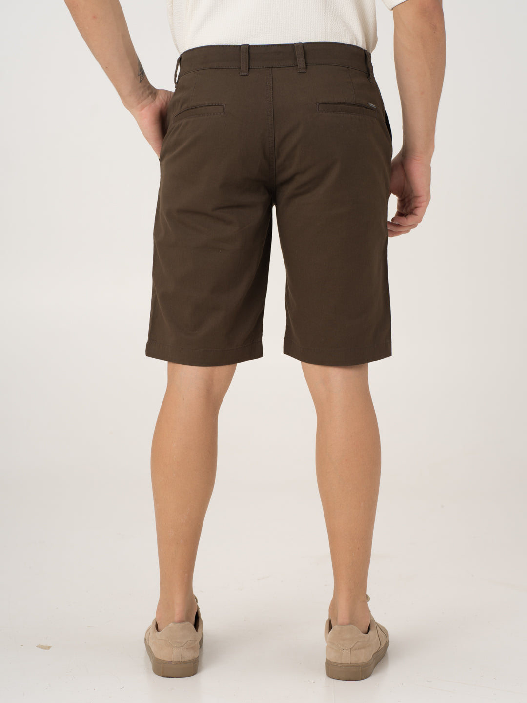 The Acron Brown Chino Shorts for men blend a timeless neutral with all-day comfort and effortless style. Crafted from soft organic cotton with high stretch, they offer breathability, flexibility, and ease of movement while maintaining a sharp look. The half-elasticated waistband ensures a relaxed yet secure fit, while the moisture-wicking fabric keeps you cool and fresh throughout the day. Designed for versatility, these Grey stretchable chino shorts seamlessly transition from casual daytime wear to evening outings, making them a must-have for any wardrobe.