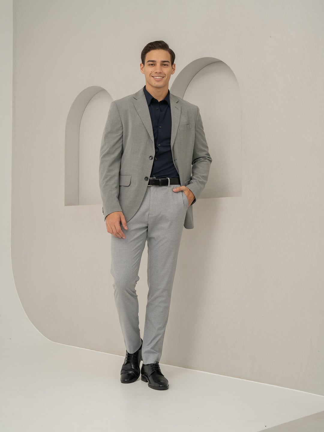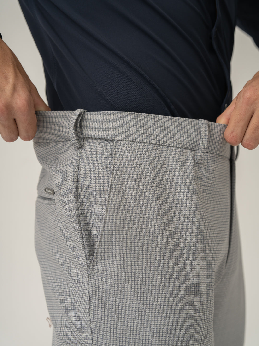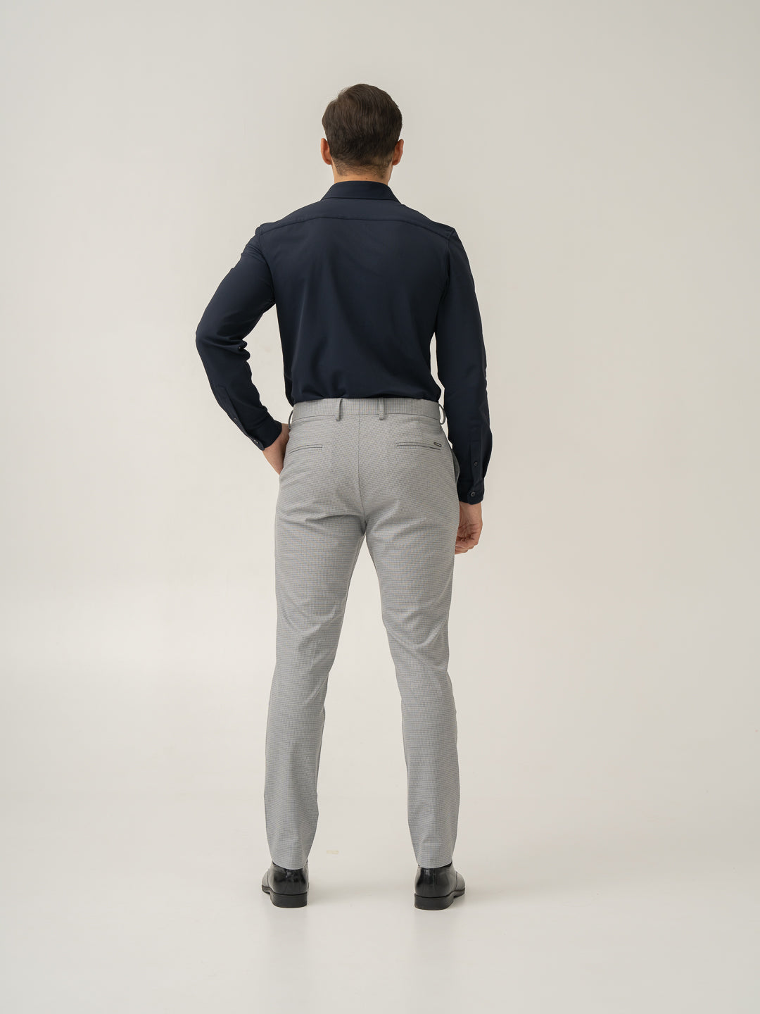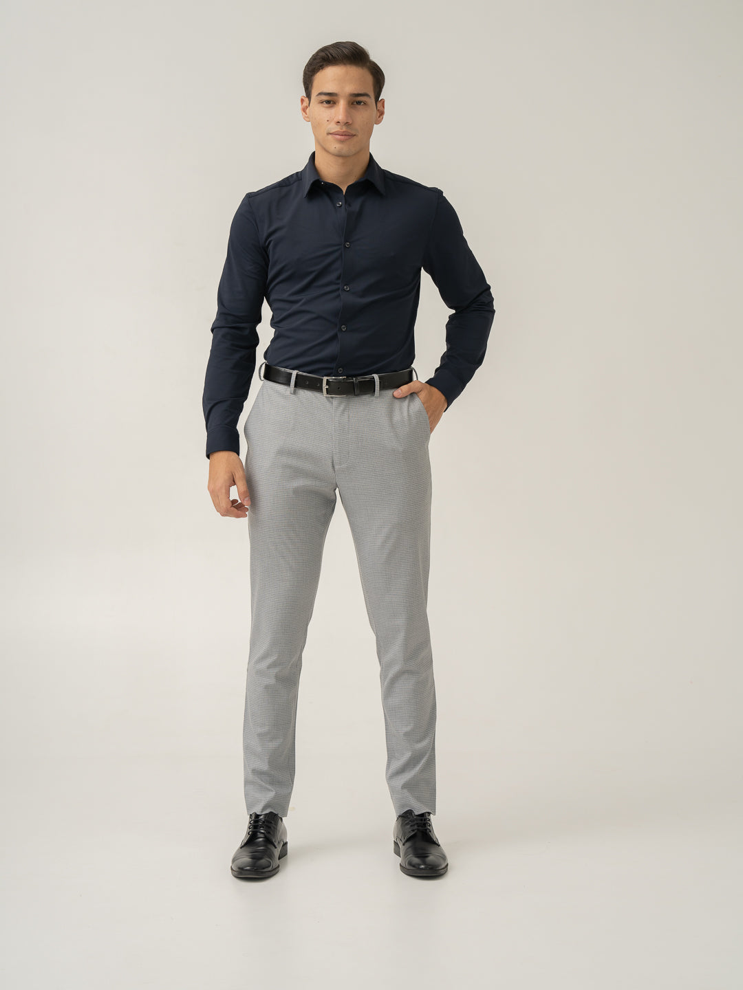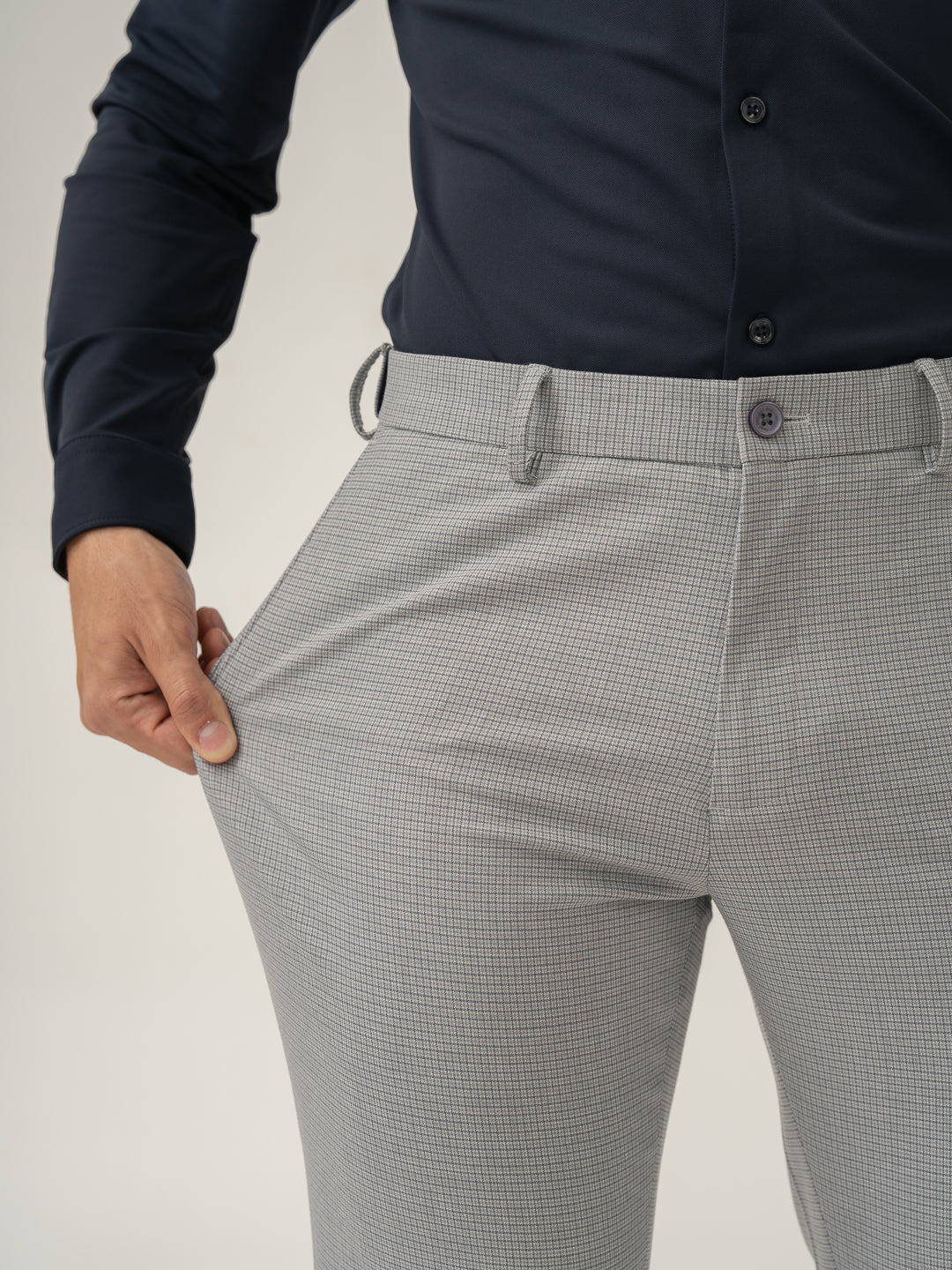 "Strong, sharp, and effortlessly stylish—the Armour Grey Micro Checks Slim Fit Stretch Formal Trousers are built for the man who means business. Crafted with 4-way stretch, a FlexTech waistband, and wrinkle-resistant fabric, these grey stretchable formal trousers move as smoothly as you do. The micro-check pattern adds a modern edge while keeping things sophisticated. Breathable, lightweight, and designed for long hours, they transition seamlessly from boardrooms to after-hours gatherings. Power dressing has never felt this comfortable.