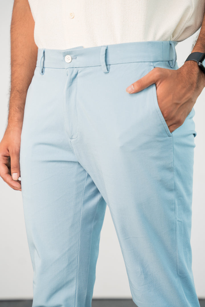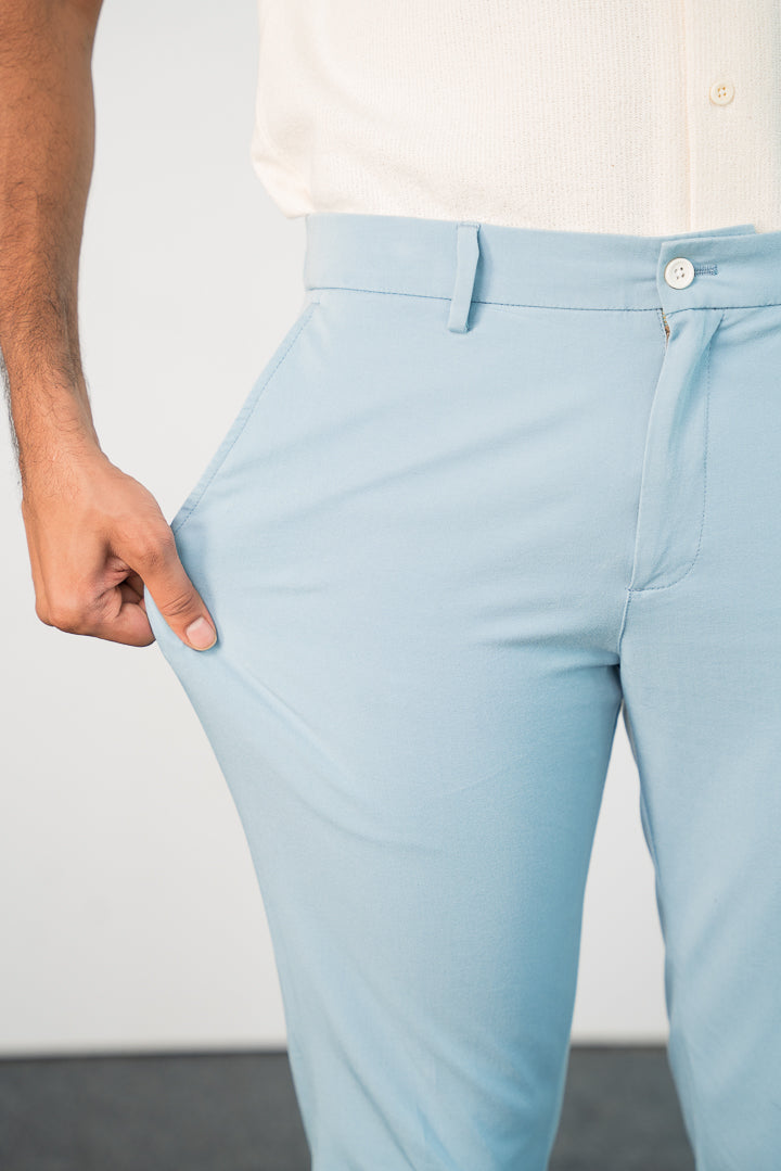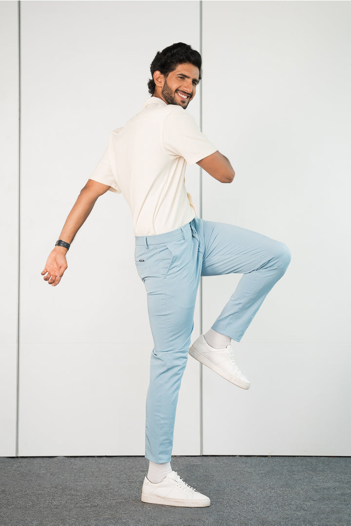 At The Pant Project, we are proud to unveil our Artic Blue Stretch Chinos, a must-have for those who value both comfort and style. Crafted predominantly from premium cotton, and enhanced by a minor blend of Lycra, these chinos ensure breathable comfort and unmatched flexibility. The soothing shade of blue brings a fresh and vibrant look to your wardrobe, suitable for any season.