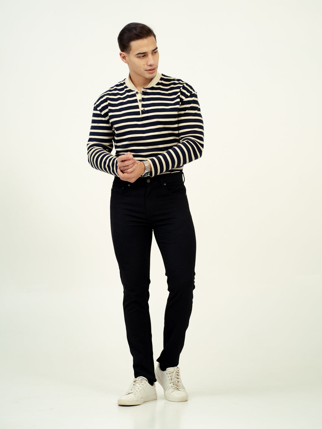 These black stretchable slim fit jeanos are designed for those who live boldly. Combining the sharpness of black denim with the comfort of power-stretch fabric, they move effortlessly with you, ensuring all-day ease. The slim fit creates a sleek, tailored silhouette, perfect for both casual and smart dressing. As they age, natural creases and fades make them uniquely yours. Whether you’re heading to work or a night out, these jeans adapt to your lifestyle. Elevate your wardrobe with these black slim fit jeanos for men, built for style, comfort, and confidence.