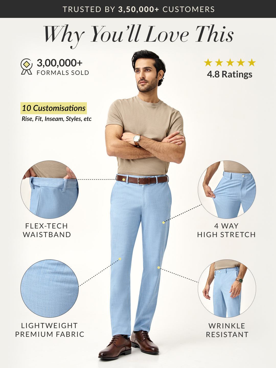 Crafted using a premium blend of 65% Polyester, 31% Viscose & 4% Elastane for lightweight comfort and additional stretch for semi-formal wear. Our model in the images wears a Slim Fit.