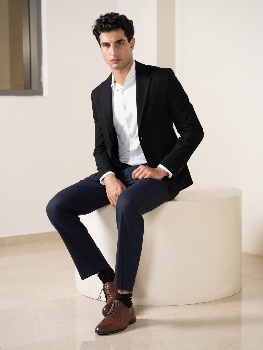 Crafted using a premium blend of 68% Polyester, 31% Viscose & 1% Elastane with four-way stretch comfort to take you from day to night whether it's working day or bar night. Our model in the images wears a Relaxed Fit.