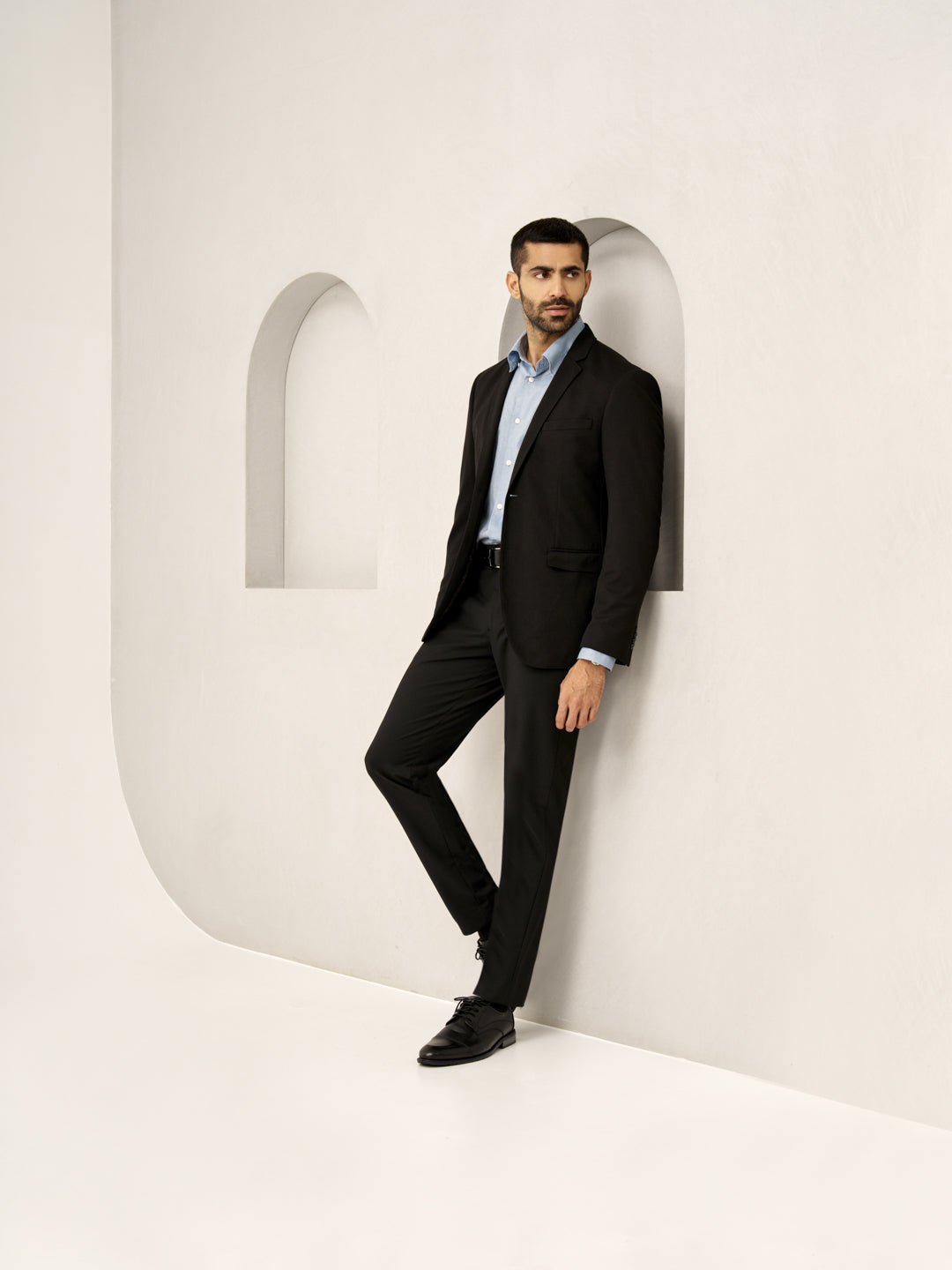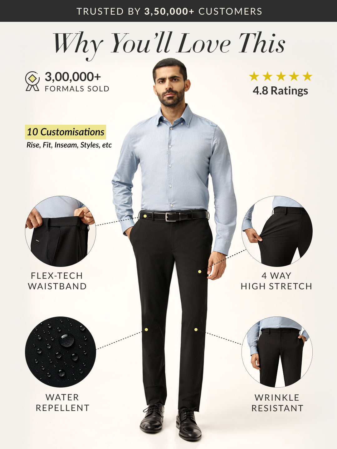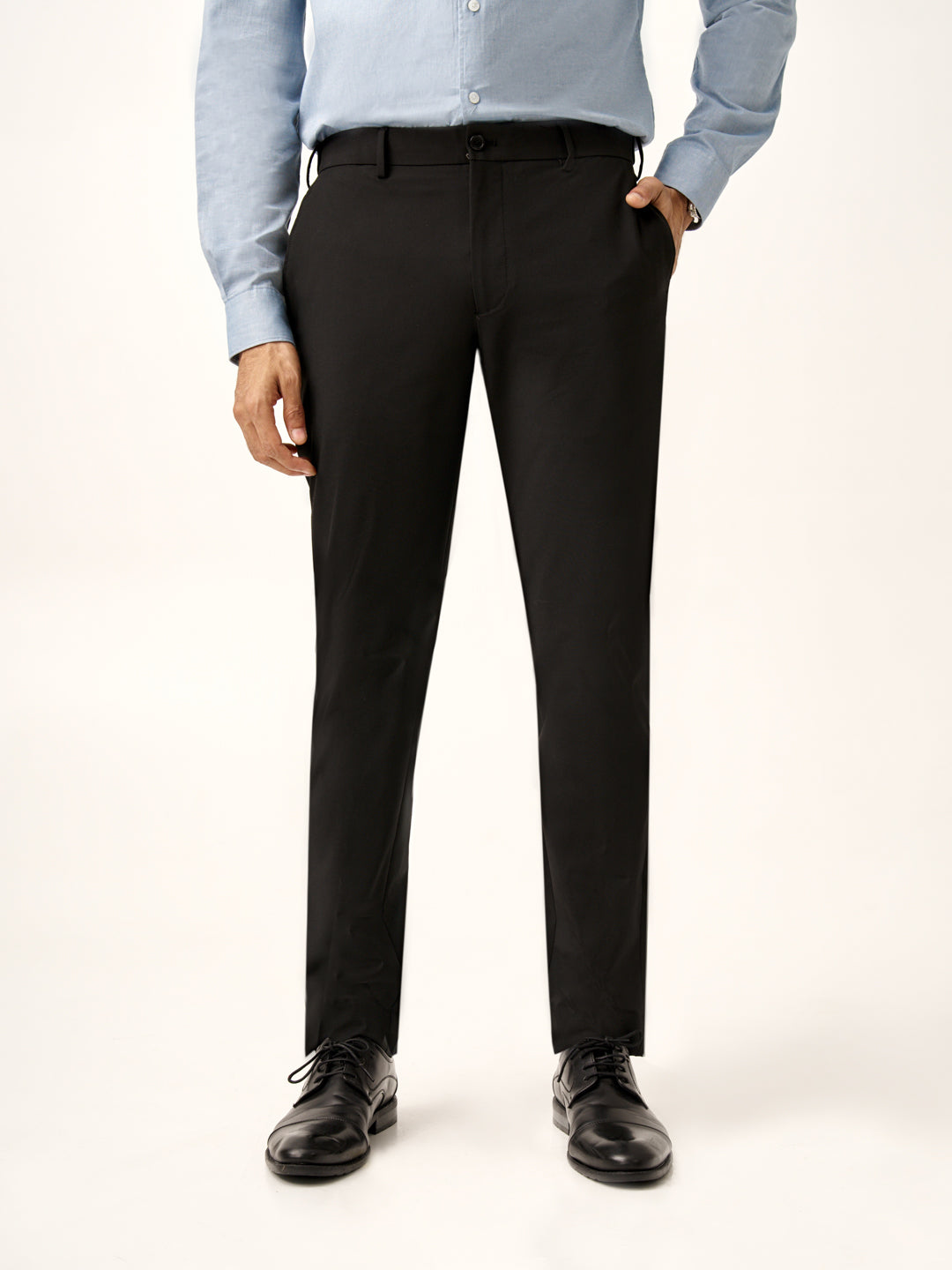 Crafted using a premium blend of 74% Polyester, 22% Viscose & 4% Elastane to give you stretch comfort for all-day wear with smart water & stain repellent technology for every season. Our model in the images wears a Slim Fit.