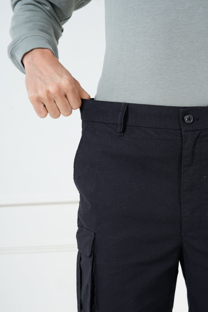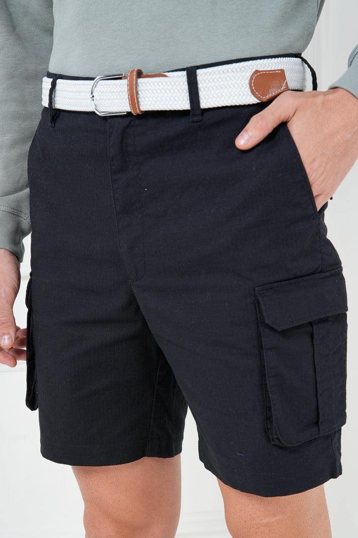 Black Ripstop Textured Cargo Shorts