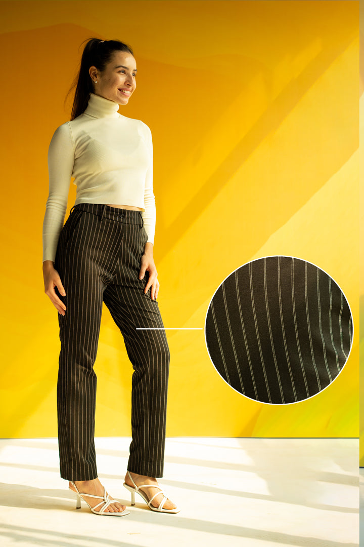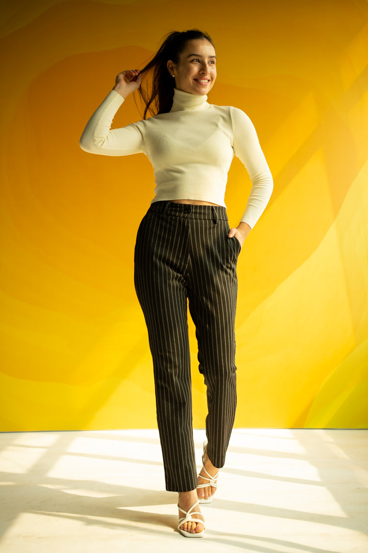 Crafted using a smart blend of 76% Polyester, 19% Viscose & 5% Elastane to give you the perfect soft-stretch-comfort. Our model in the image is wearing high rise Tapered Fit