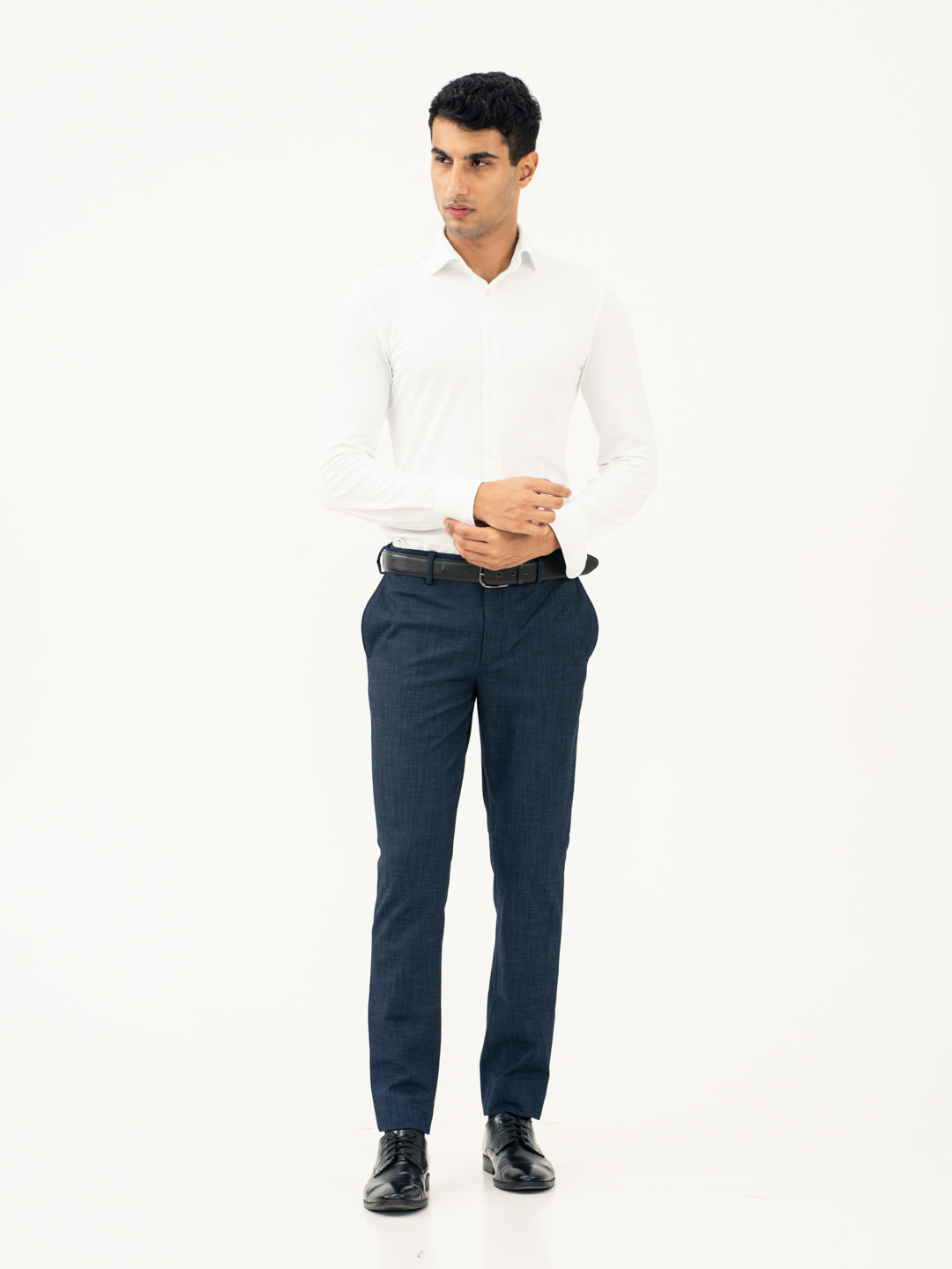 Crafted using a premium blend of 65% Polyester, 31% Viscose & 4% Elastane for lightweight comfort and additional stretch for semi-formal wear. Our model in the images wears a Slim Fit.
