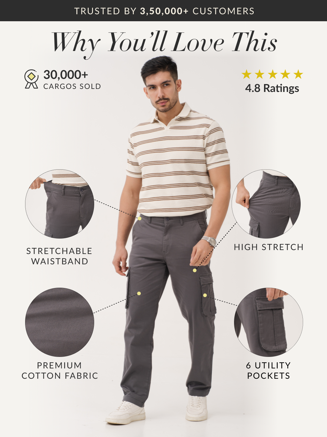 The Cave Grey Relaxed Fit Stretch Cargo Pants offer comfort, style, and versatility. Made from a high-quality cotton blend with stretch, these Cave Grey Stretch Cargo Pants provide a relaxed fit that ensures comfort throughout the day. With six pockets for convenience, these grey cargo pants for men are perfect for keeping your essentials handy. The breathable, moisture-wicking fabric keeps you comfortable no matter the activity. The cool, neutral cave grey color adds a contemporary touch to any outfit, making these cargos an easy go-to for casual outings or outdoor adventures.