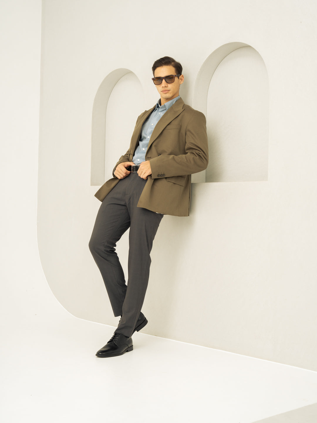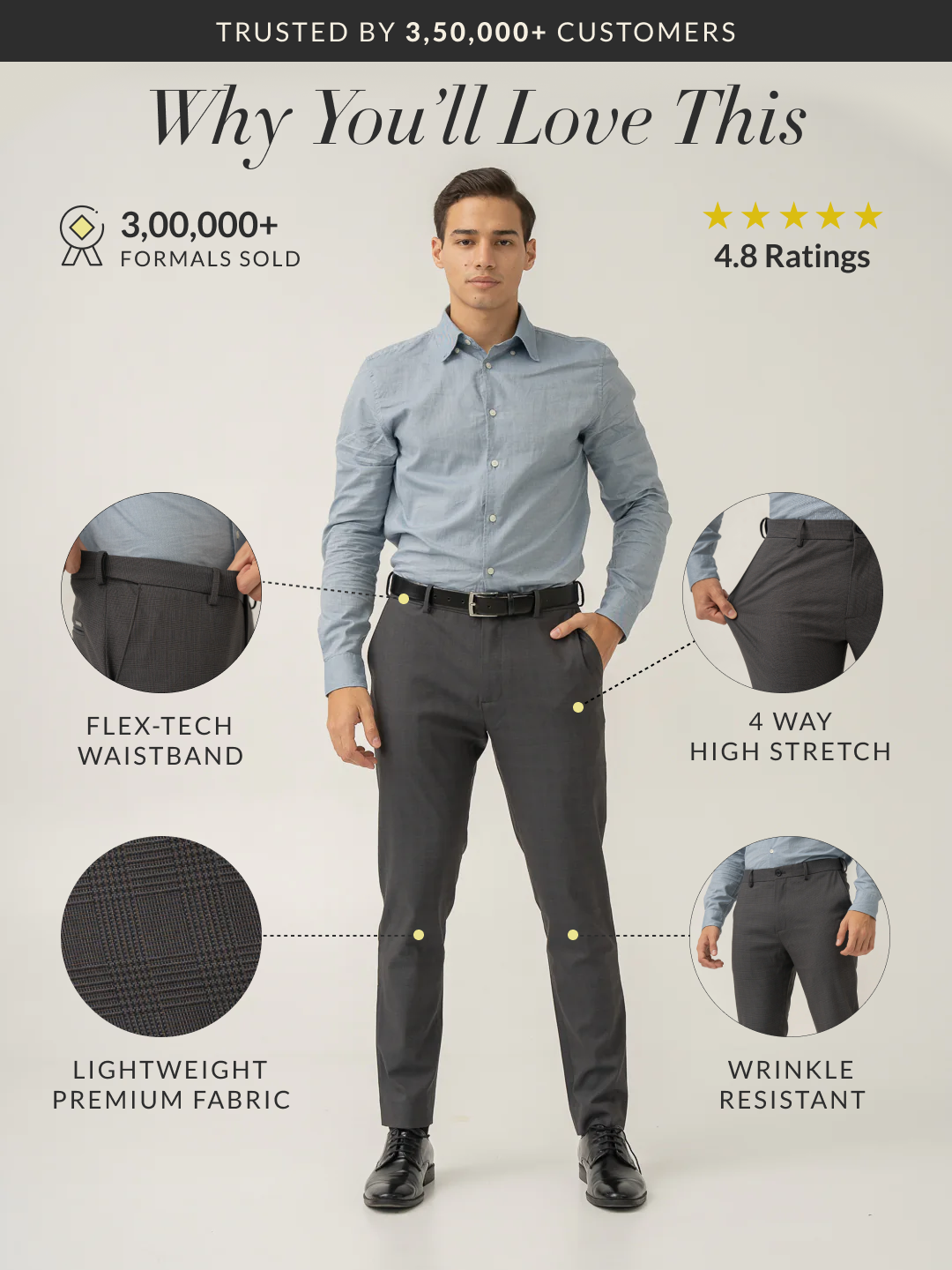 Crafted using a smart blend of 74% Polyester, 21% Viscose & 5% Elastane to give you the additional soft-stretch-comfort. Our model in the image wears a Slim Fit.