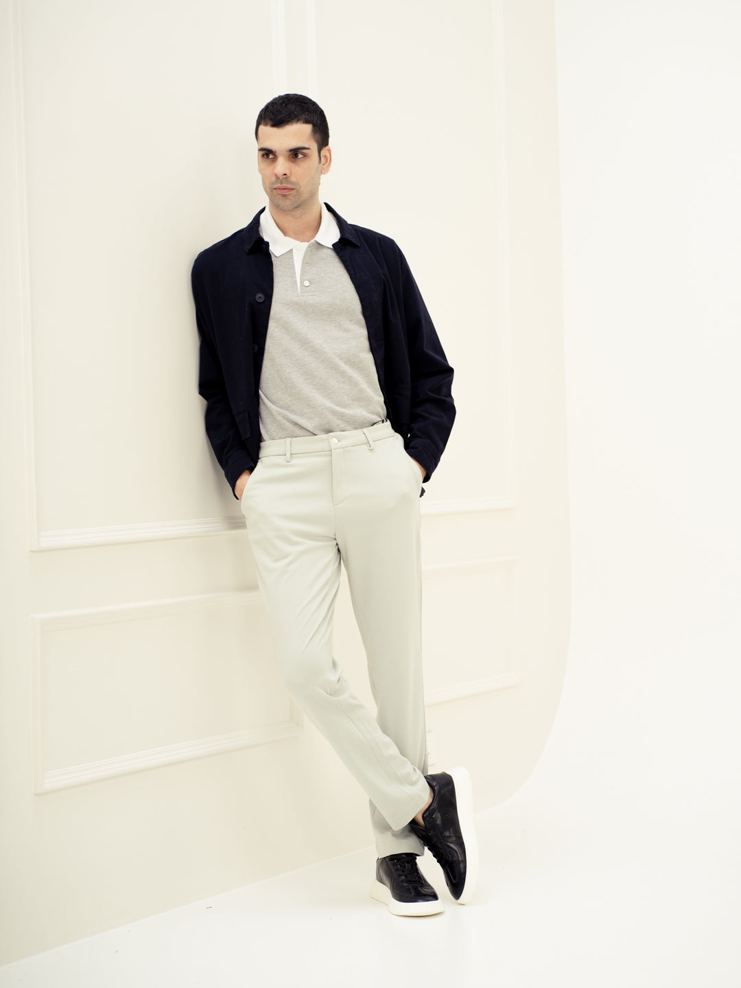 Crafted using a smart blend of 65% Polyester, 30% Viscose & 5% Elastane to give you the additional soft-stretch-comfort. Our model in the image wears a Slim Fit.