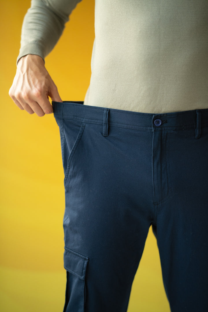 At The Pant Project, we are excited to introduce our Classic Navy Stretch Cargo Pants, designed to redefine casual comfort with a touch of sophistication. Designed using superior cotton subtly enriched with a touch of Lycra, these pants ensure lightweight comfort and flexibility, making them perfect for any casual occasion. The six-pocket design offers practicality and style, allowing you to carry essentials with ease while maintaining a sleek look.