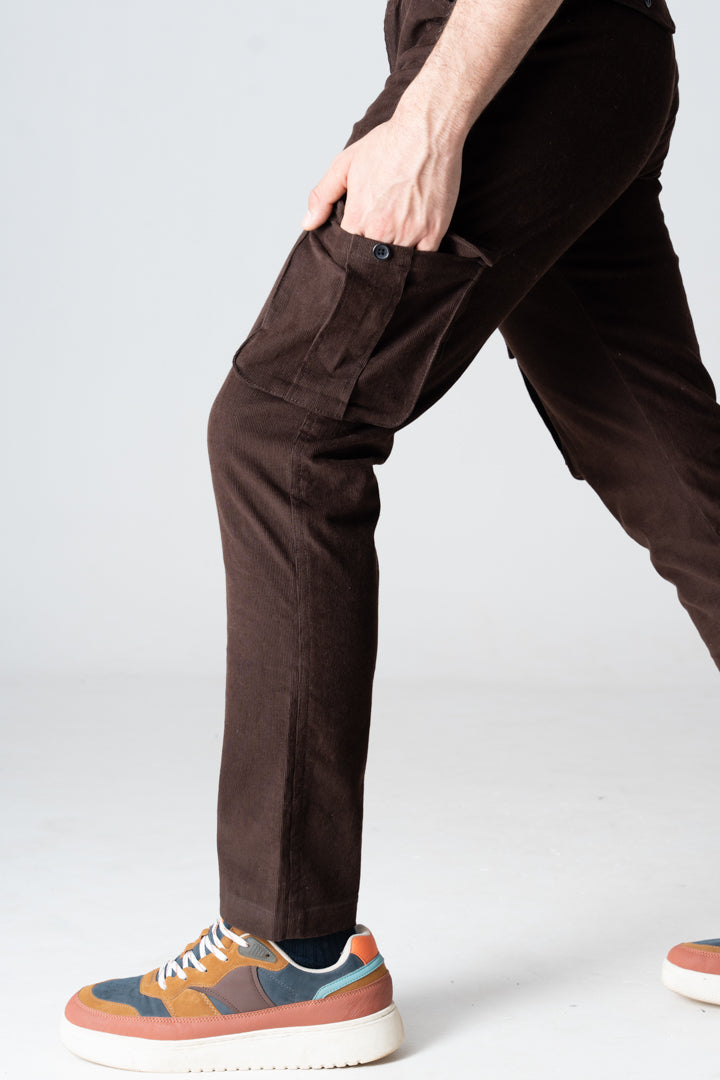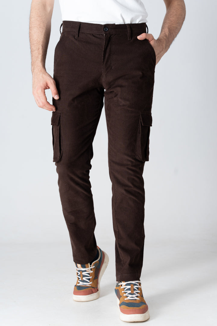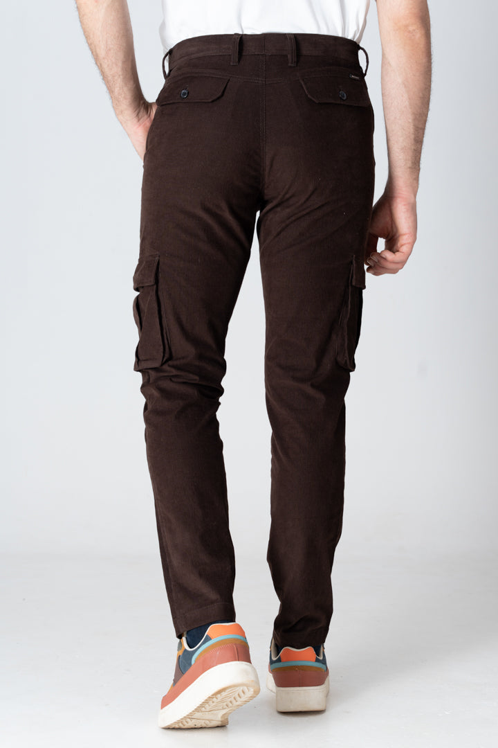 Coffee Brown Corduroy Stretch Cargo Pants