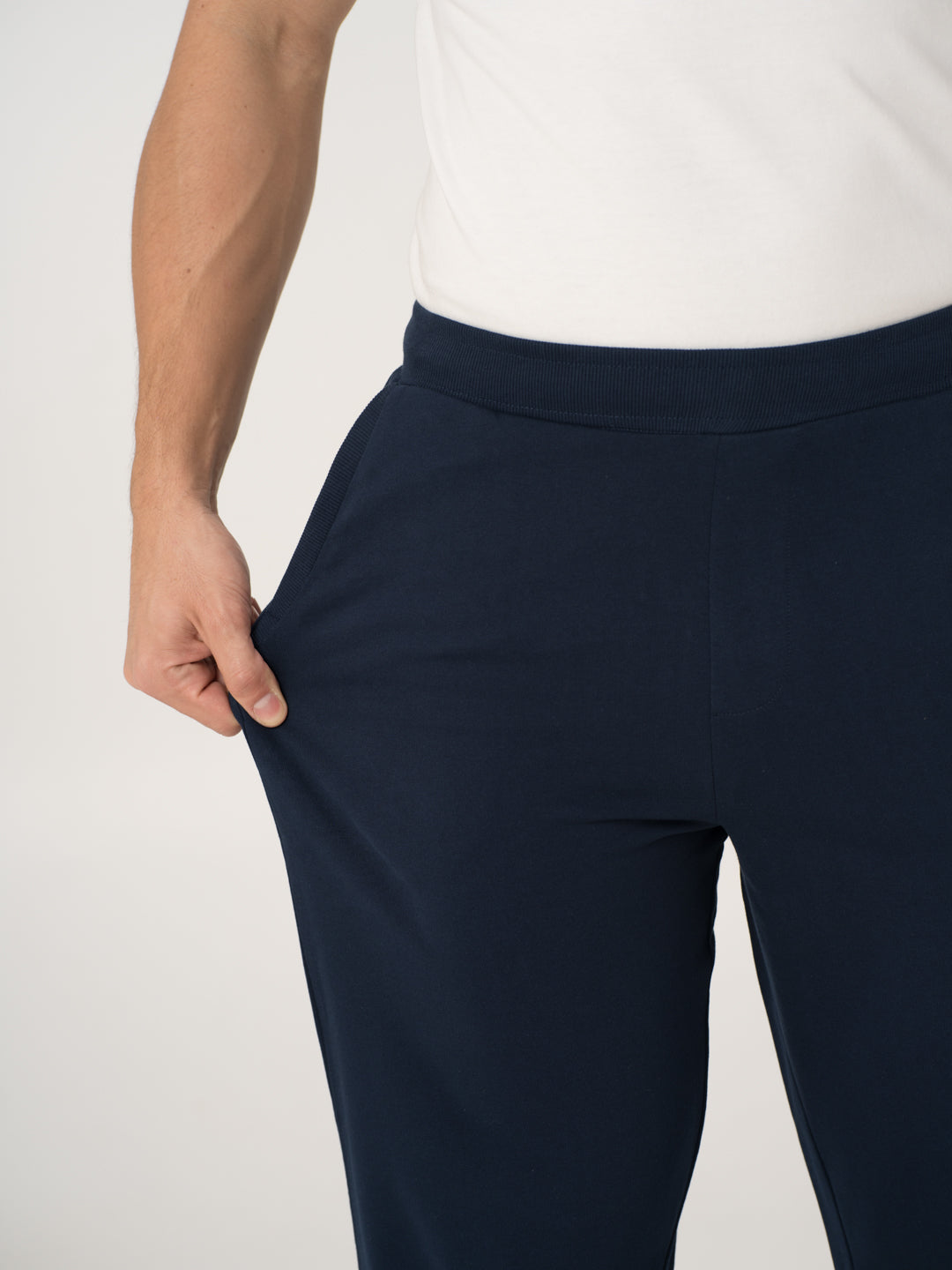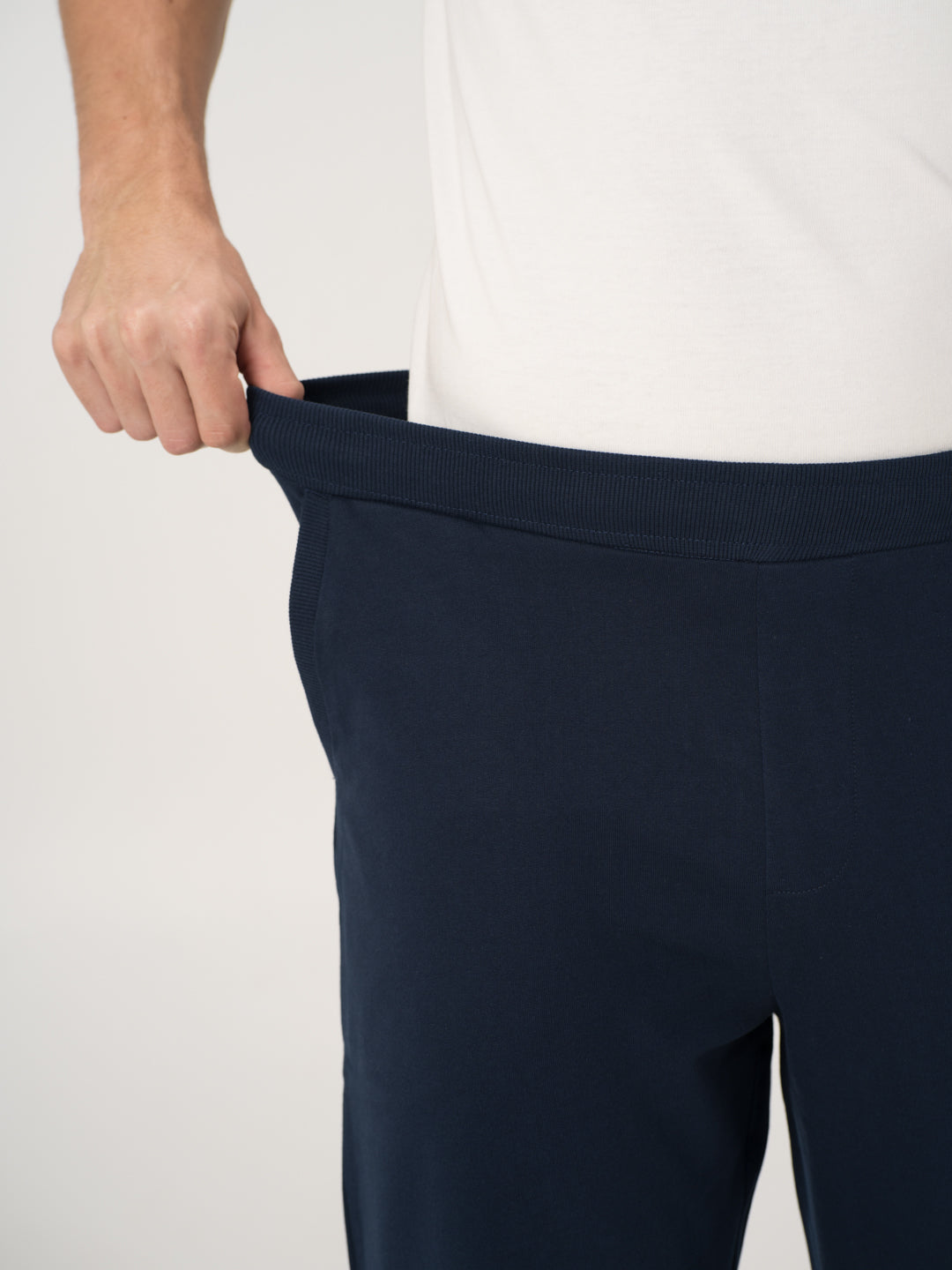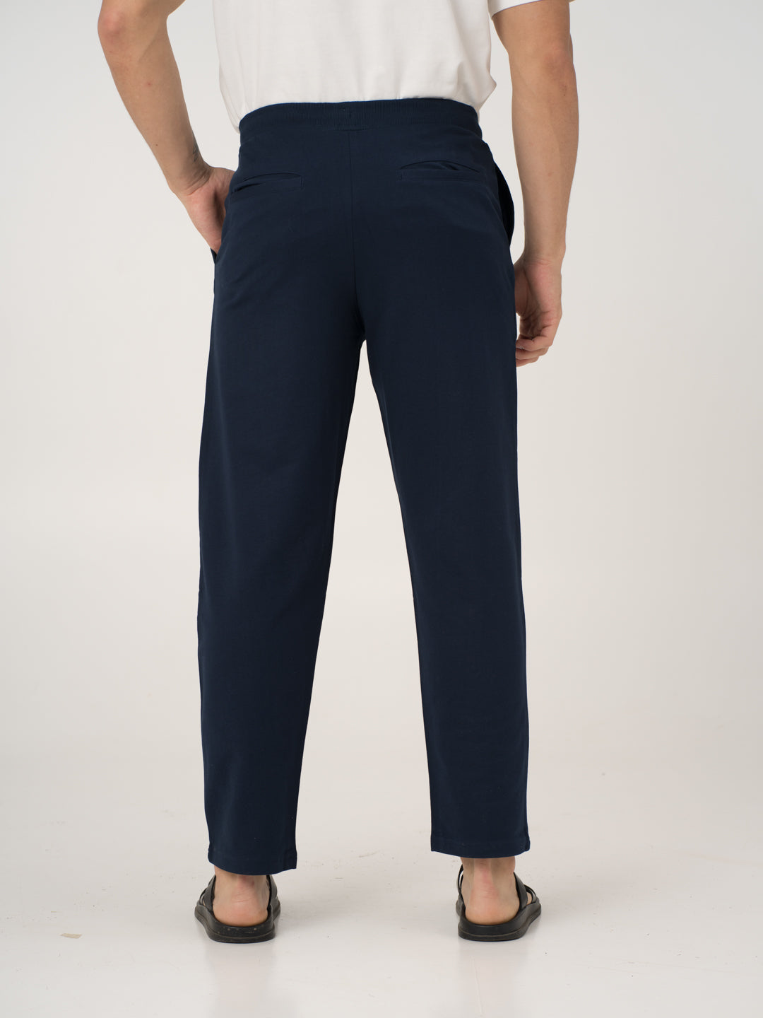 Cosmic Navy Cotton Sweatpants built for ease, worn on repeat. These cosmic navy blue sweatpants define everyday comfort, crafted from soft organic cotton with a stretchable waistband and 4-way stretch for all-day movement—no stiffness, no fuss. Moisture-wicking fabric keeps you dry, and the breathable knit ensures you stay cool even on the move. Designed with clean lines and an everyday fit, the deep navy shade goes with everything. A versatile essential that slides seamlessly into your routine. Add these navy blue cotton sweatpants for men to your line-up—you’ll be surprised how often they make the cut.
