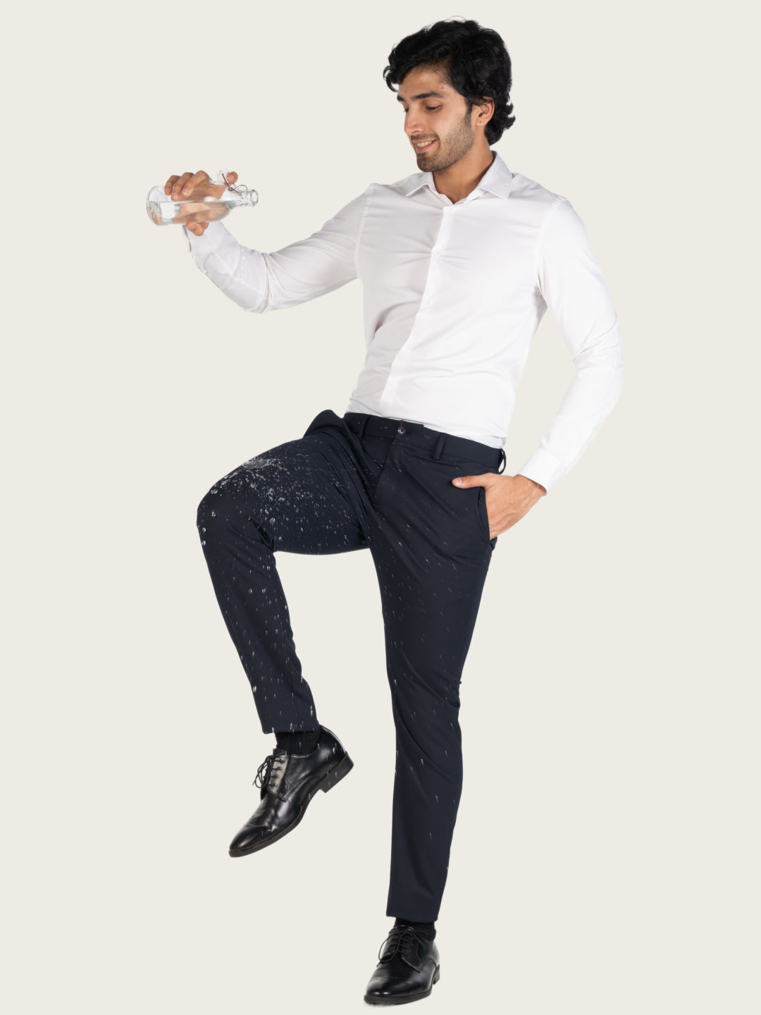 Crafted using a premium blend of 74% Polyester, 22% Viscose & 4% Elastane to give you stretch comfort for all-day wear with smart water & stain repellent technology for every season. Our model in the images wears a Slim Fit.