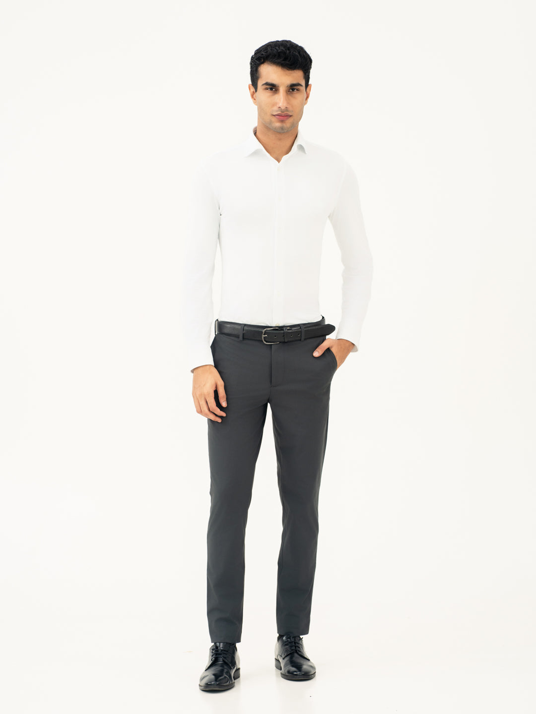 Crafted using a premium blend of 63% Polyester, 31% Viscose & 6% Elastane with four-way stretch comfort to take you from day to night whether it's working day or bar night. Our model in the images wears a Tapered Fit.