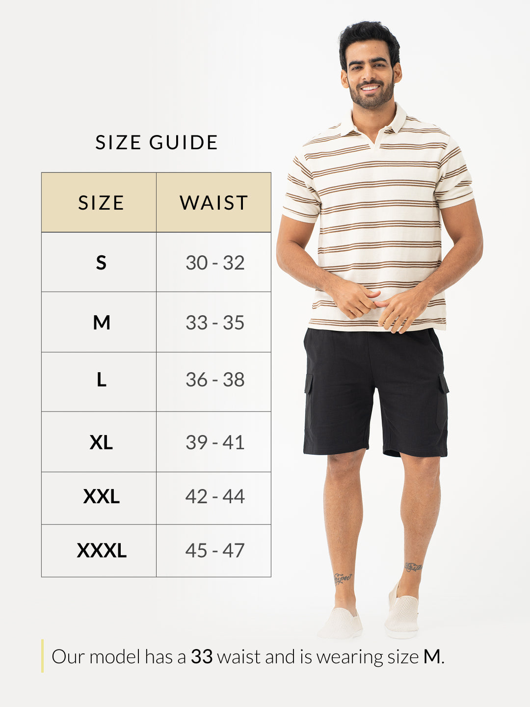 Crafted using a premium blend 99% Cotton, 1 % lycra. Our model has a 33 waist and is wearing size M in Relaxed Fit.