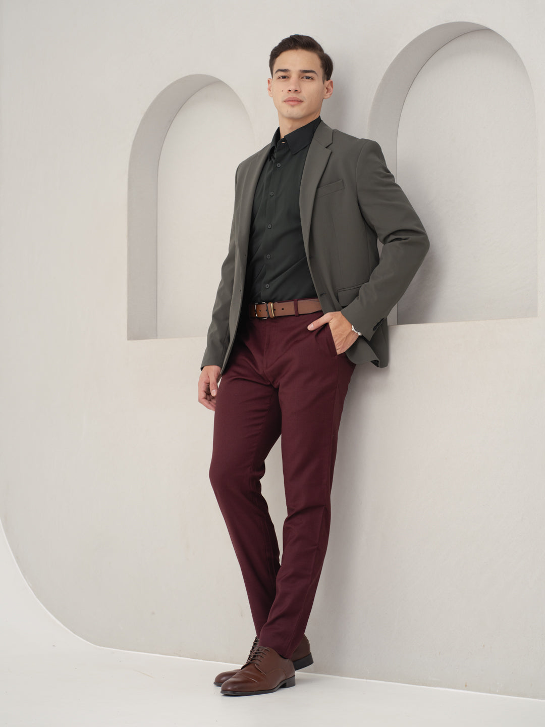 Crafted using a premium 51% Wool, 47 % Polyester, 2% Elastane for lightweight wear & supreme thermo-regulating comfort. Our model in the images wears a Slim Fit.