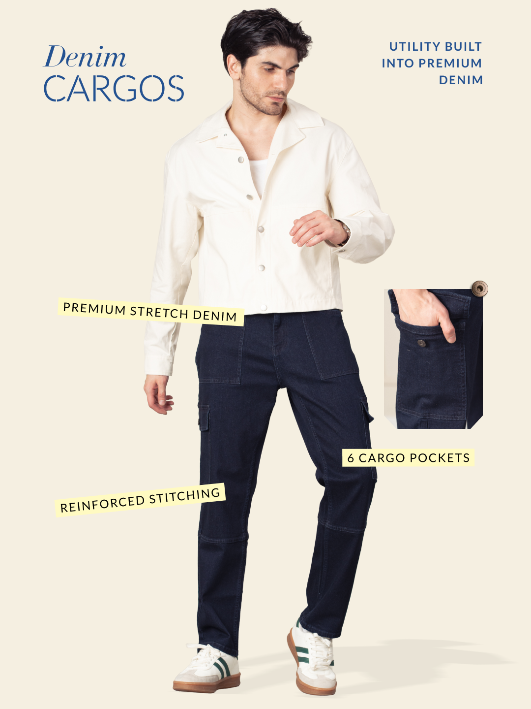 Crafted using a premium blend of 98% Cotton & 2% Spandex to give you the perfect casual style in two-way stretch comfort. Our model in the images wears a Relaxed Fit.