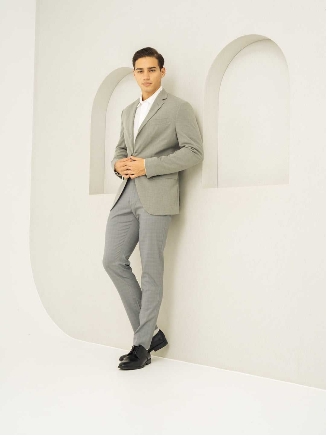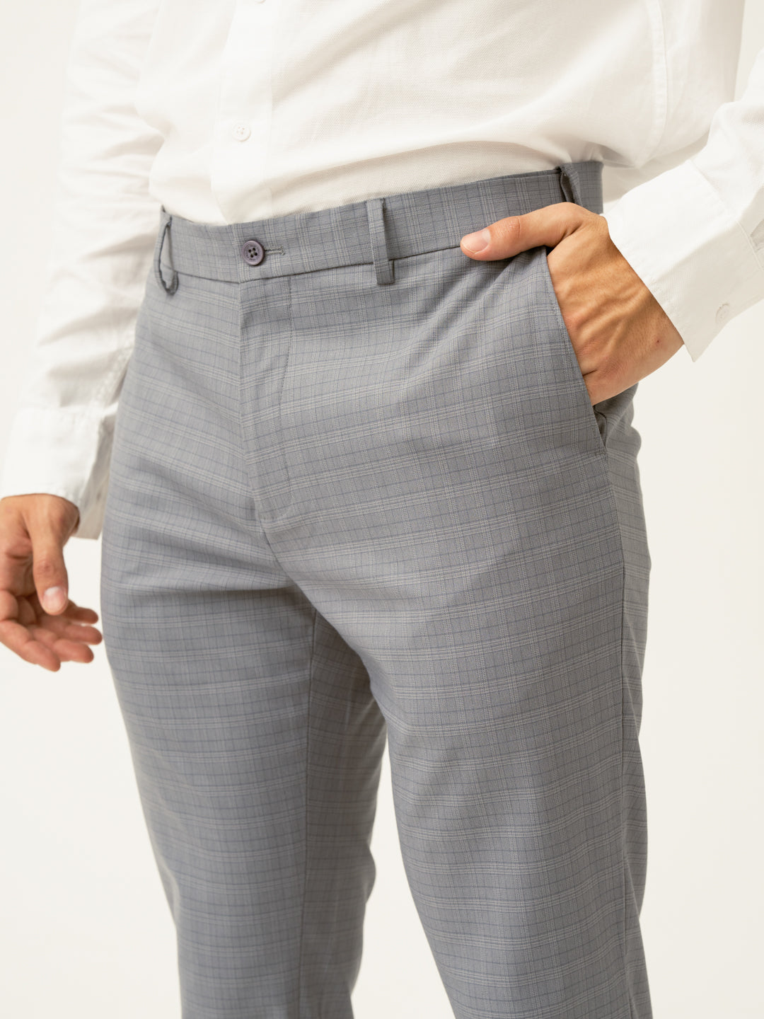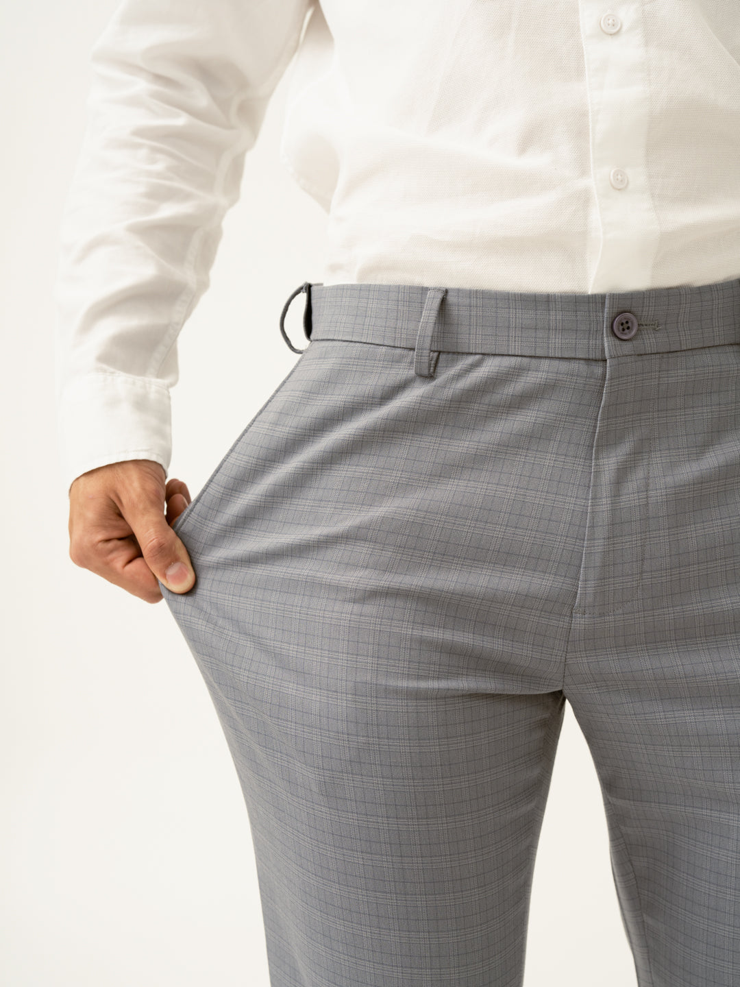 "Timeless, polished, and built for movement, the Dolphin Grey Checks Slim Fit Stretch Formal Trousers bring together classic design and modern functionality. These grey stretchable formal trousers feature 4-way stretch, a FlexTech waistband, and wrinkle-resistant fabric, ensuring all-day comfort and effortless style. The check pattern adds depth without overpowering, making them perfect for work, travel, or weekend outings. Breathable and lightweight, they’re a go-to for men who value both form and function. Because dressing well should always feel this easy.