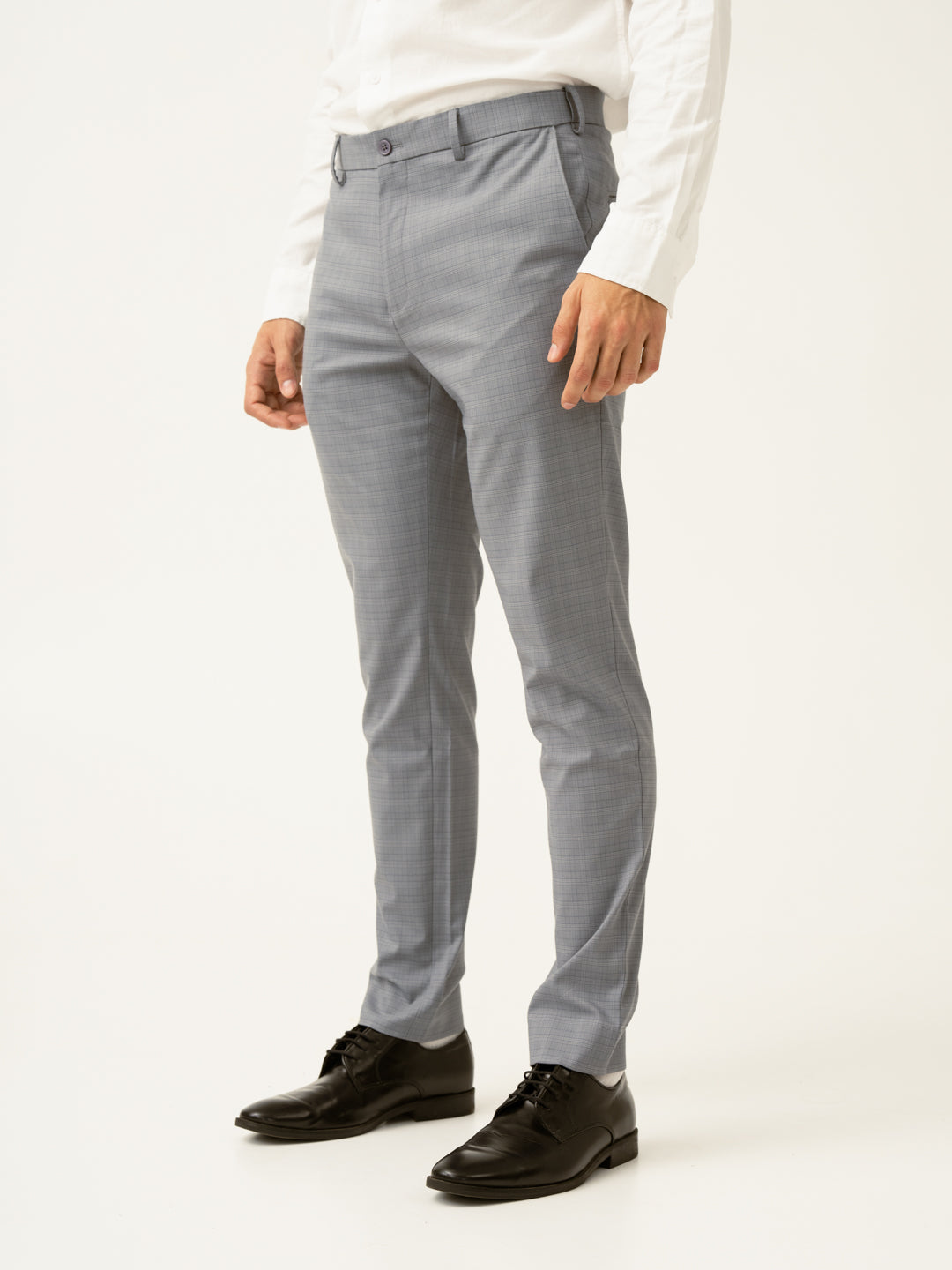 Dolphin Grey Checks Slim Fit Stretchable Formal Trousers | Lightweight & Breathable Formal Trousers With Moisture Wicking Tech
