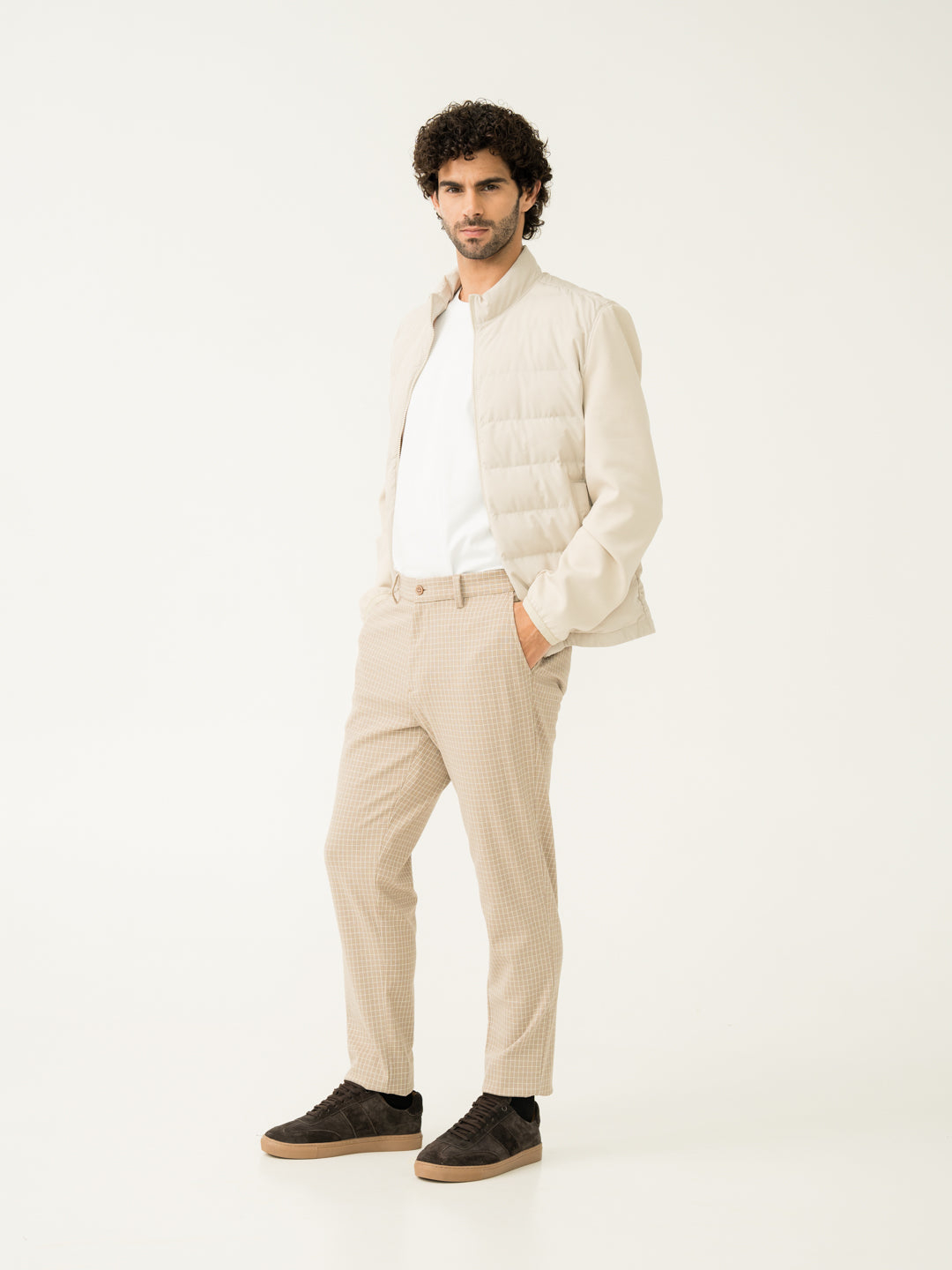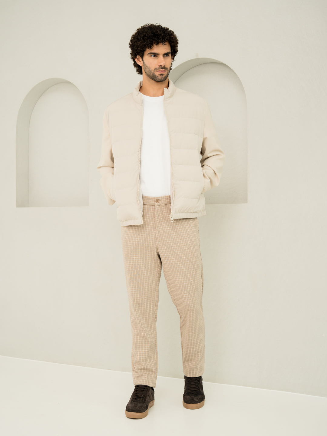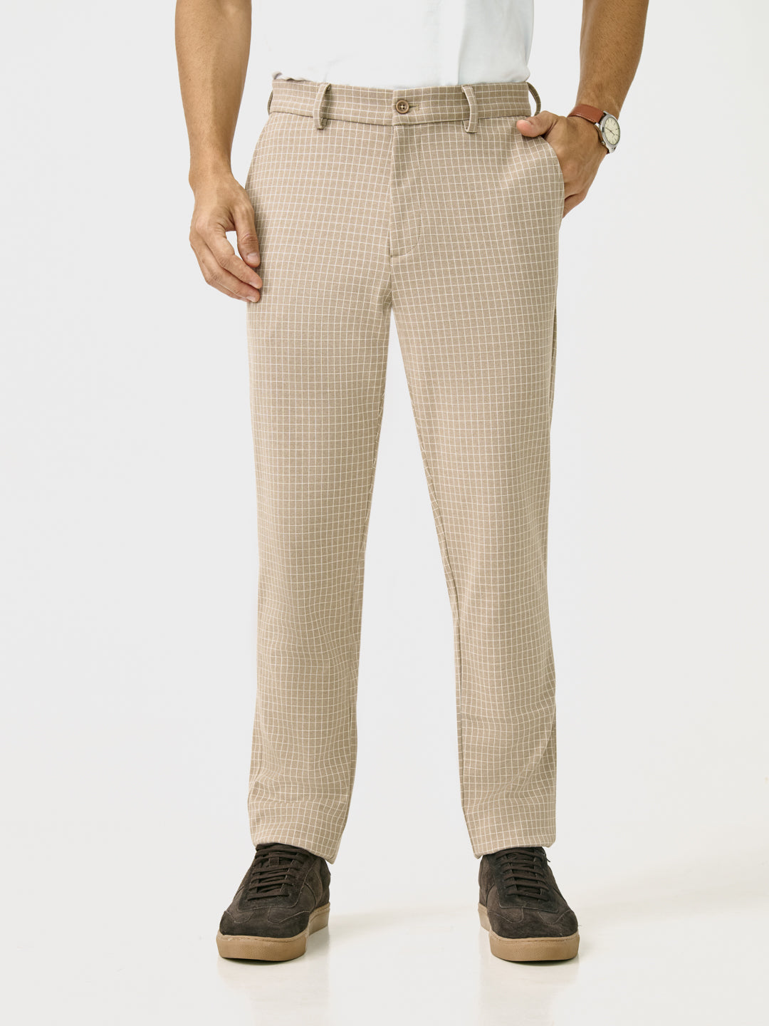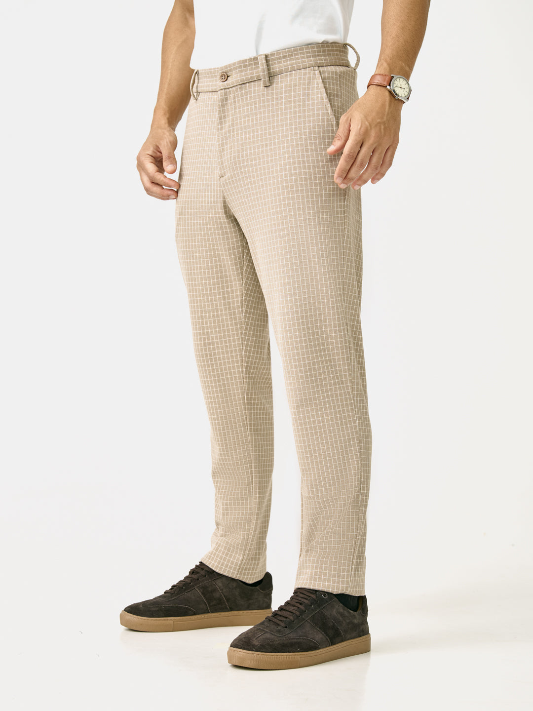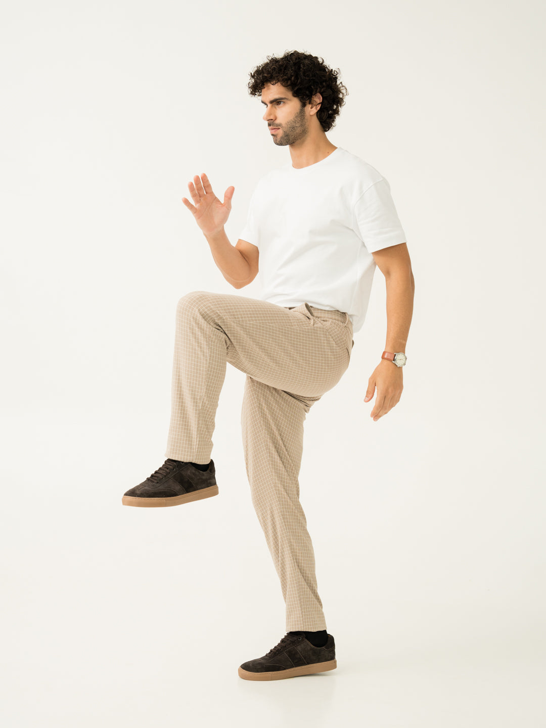 The Dune Khaki Checks Power-Stretch Pants are your neutral game-changer. These khaki stretchable trousers are made to move, with a soft yet structured feel thanks to our signature four-way stretch fabric. Custom-fit for you, they offer all-day comfort and sharp style. Wrinkle-resistant and moisture-wicking, they’re ready for whatever your day throws at you. The Dune Khaki Stretchable Trousers bring earthy tones and refined details together—making them perfect for office hours or out-of-office escapes, all while keeping you cool and comfortable.