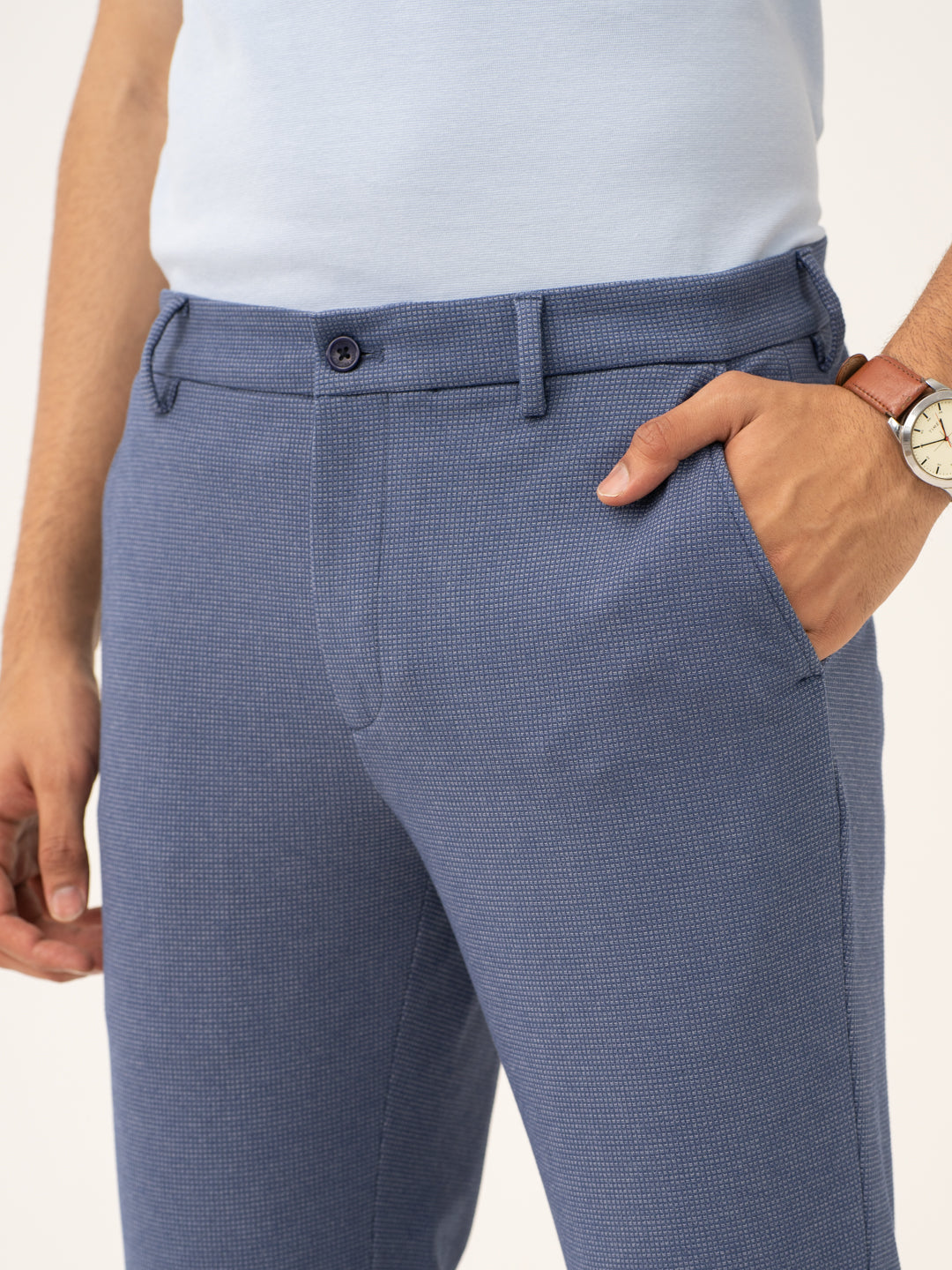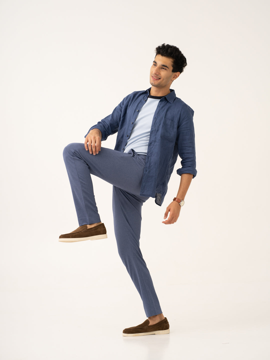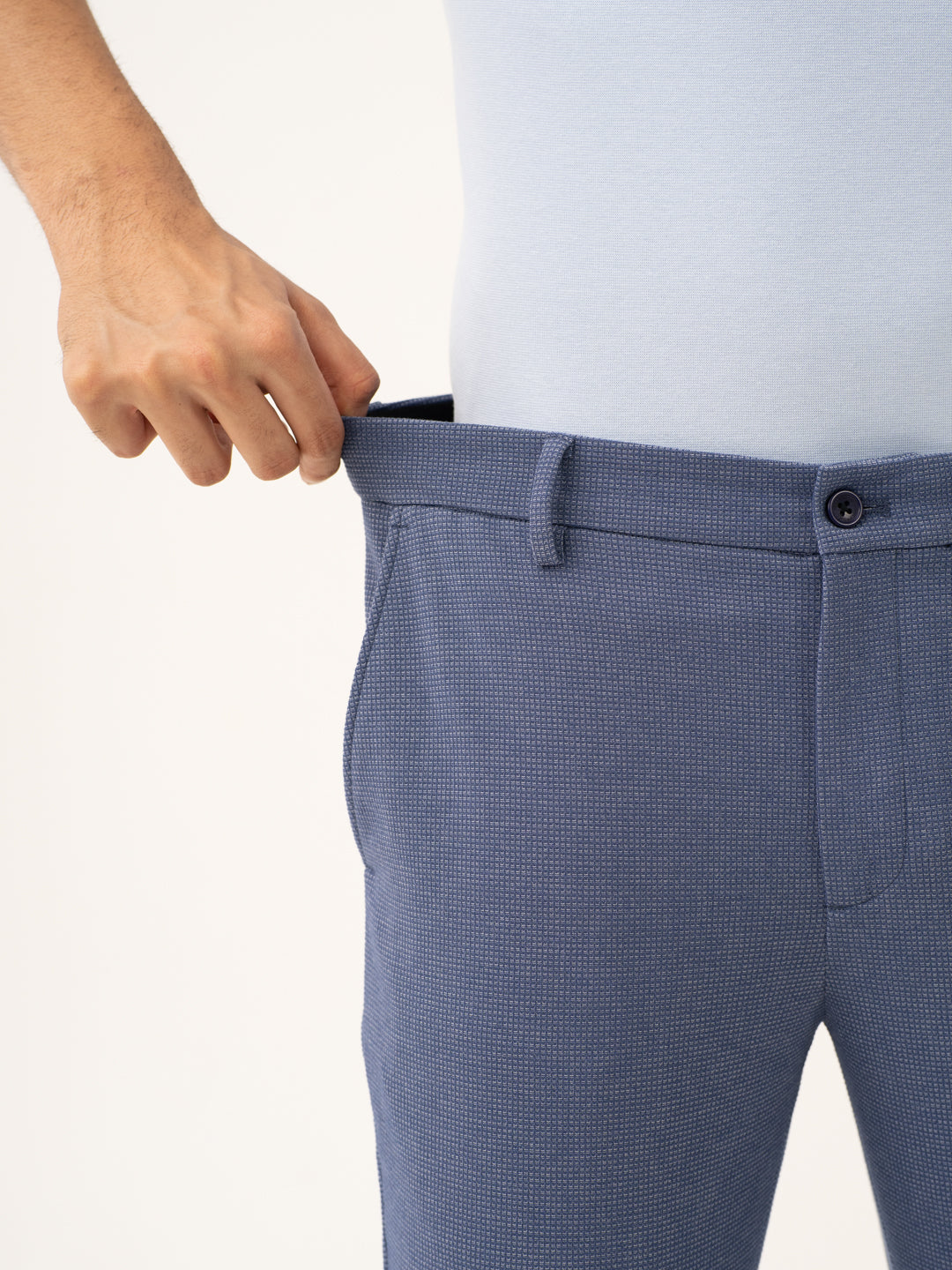 Echo Blue Waffle Textured Power-Stretch Pants are perfect for the man who appreciates both style and flexibility. These custom-made Echo Blue Waffle Textured Stretchable Trousers are designed with high-performance stretch fabric that provides ultimate comfort. The cool blue hue and distinctive waffle texture give these Blue Stretchable Trousers a fresh, modern look. Breathable, lightweight, and wrinkle-resistant, they keep you feeling and looking great no matter the occasion. Whether you’re at work, out with friends, or running errands, these custom-made pants offer style, comfort, and ease of movement in one.