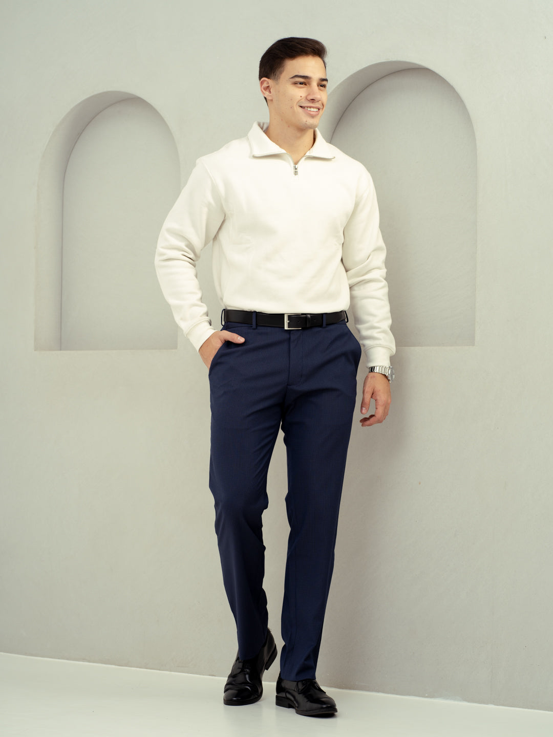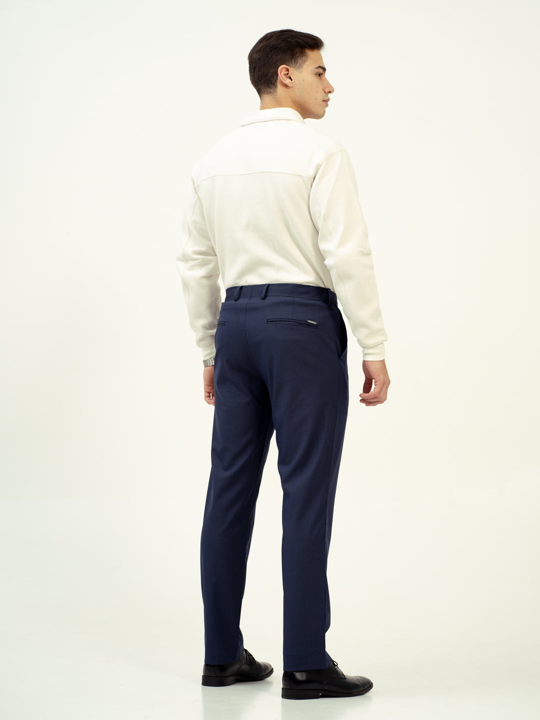 Elevate your formal wardrobe with the Eclipse Blue Mini Checks Stretch Formal Pants. These Eclipse Blue Mini Checks Formal Trousers feature a stylish mini check pattern, combining classic style with a modern touch. Made from premium stretchable fabric, they offer ultimate comfort and flexibility, making them ideal for long days at work or special occasions. The rich blue hue adds a vibrant edge to your look, while the check pattern ensures you’re always in style. For anyone seeking Blue stretchable formal trousers that are both stylish and functional, this pair is a must-have.