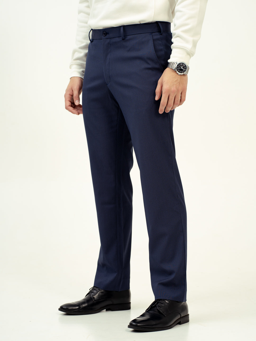 Eclipse Blue Mini Checks Stretch Formal Pants