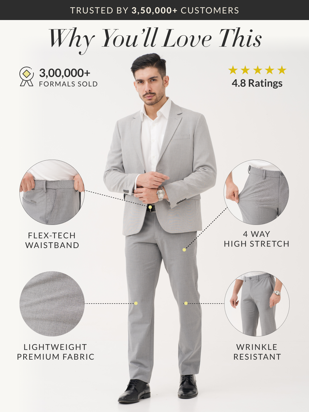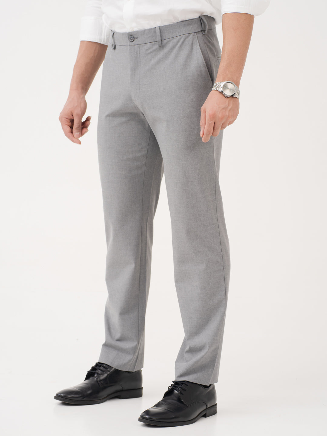Effortless Grey Relaxed Fit Stretchable Formal Trousers | Lightweight & Breathable Formal Trousers With Flextech Waistband