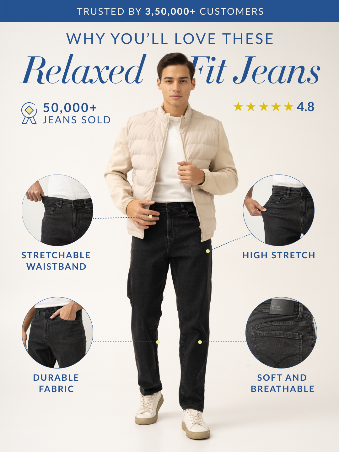 Crafted using a premium blend of 98% Cotton, 2% Spandex to give you the perfect casual style in four-way stretch comfort. Our model in the images wears a Relaxed Fit.