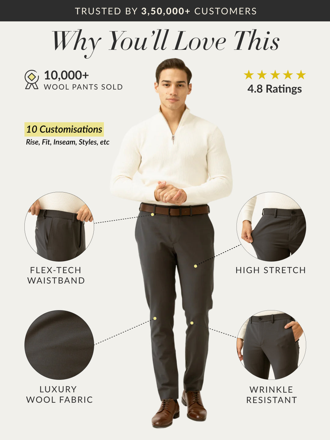 Crafted using a premium blend of 52% Merino Wool, 43% Polyester and 5% Elastane for lightweight wear & supreme thermo-regulating comfort. Our model in the images wears a Slim Fit.