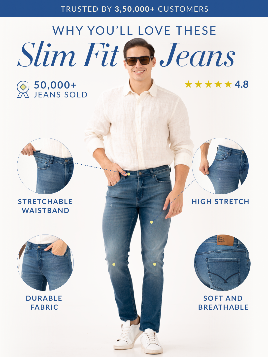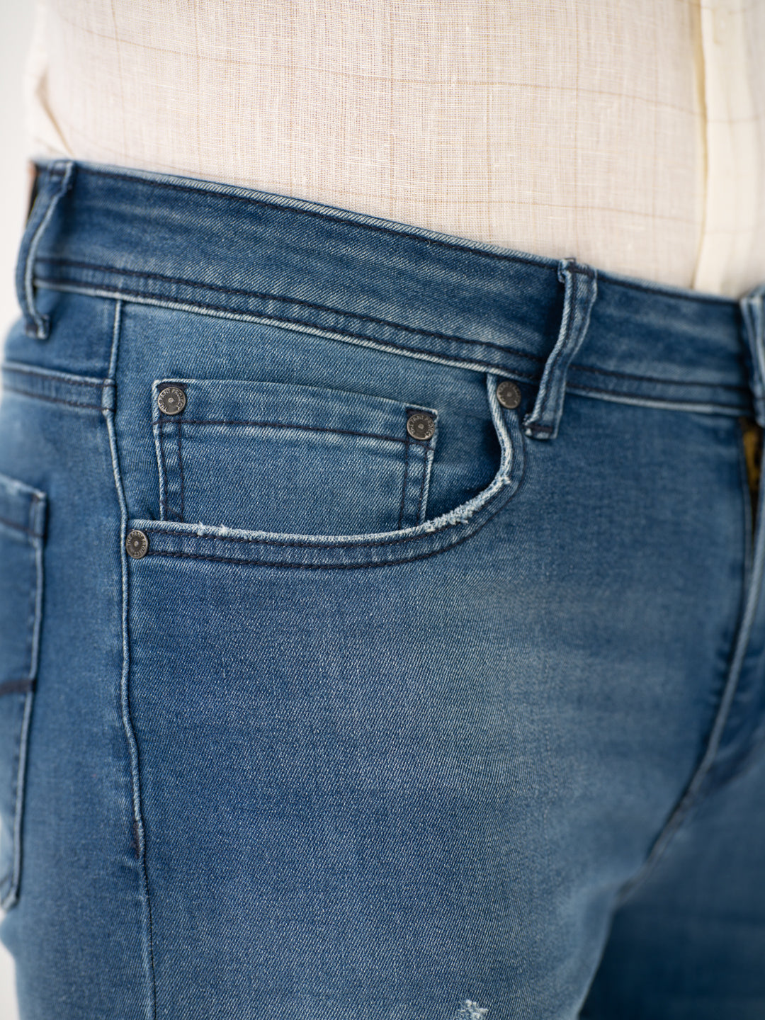 These glacier blue stretchable slim fit jeans are crafted for those who embrace adventure. With distressed detailing and a faded blue wash, they capture the perfect balance of edge and effortless style. The power-stretch fabric offers flexibility and comfort, allowing you to move freely without restrictions. Designed to evolve with every wear, the natural creases and scuffs add character over time. Whether you’re hitting the streets or keeping it casual, these jeans are built for bold living. Upgrade your denim collection with these glacier blue slim fit jeans for men, made for fearless style.