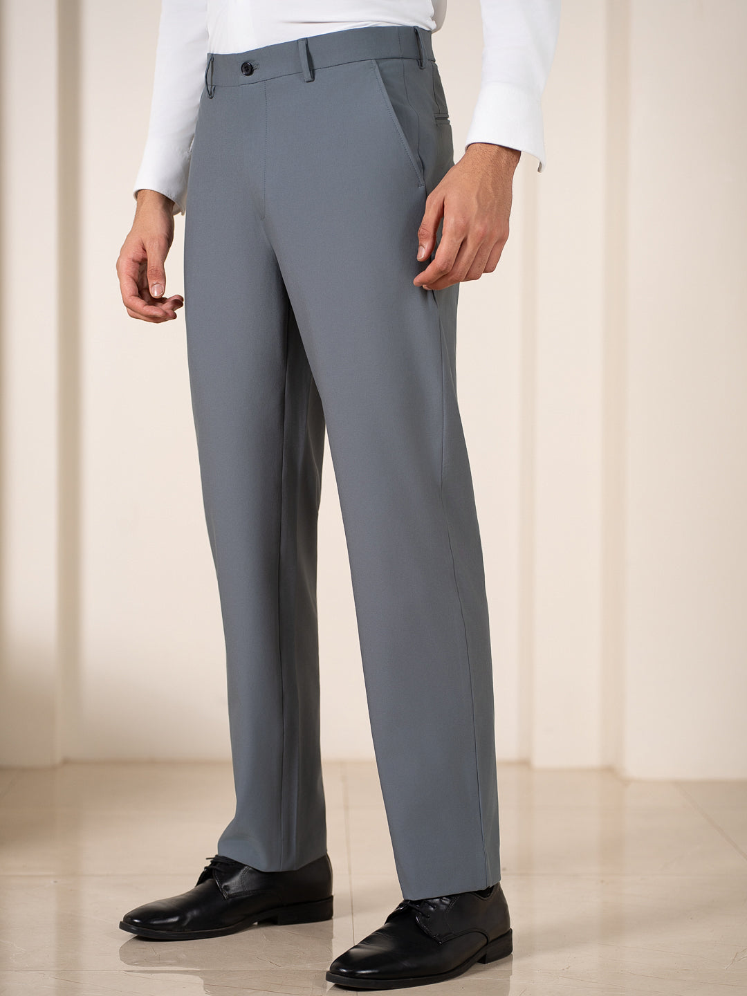 Go-to Grey 925 Relaxed Fit Smart Formal Trousers are designed for professionals who need style, comfort, and all-day mobility. Crafted from a high-performance polyester–spandex blend, these grey formal trousers offer smooth stretch, lightweight wear, and reliable shape retention. The hidden elastic waistband ensures a flexible, tailored fit while keeping your shirt neatly in place. Minimal creasing and a crisp, structured drape make them ideal for workdays, client meetings, business travel, and after-hours plans. Pair with white shirts, blazers, or suits for a polished, boardroom-ready look every day.