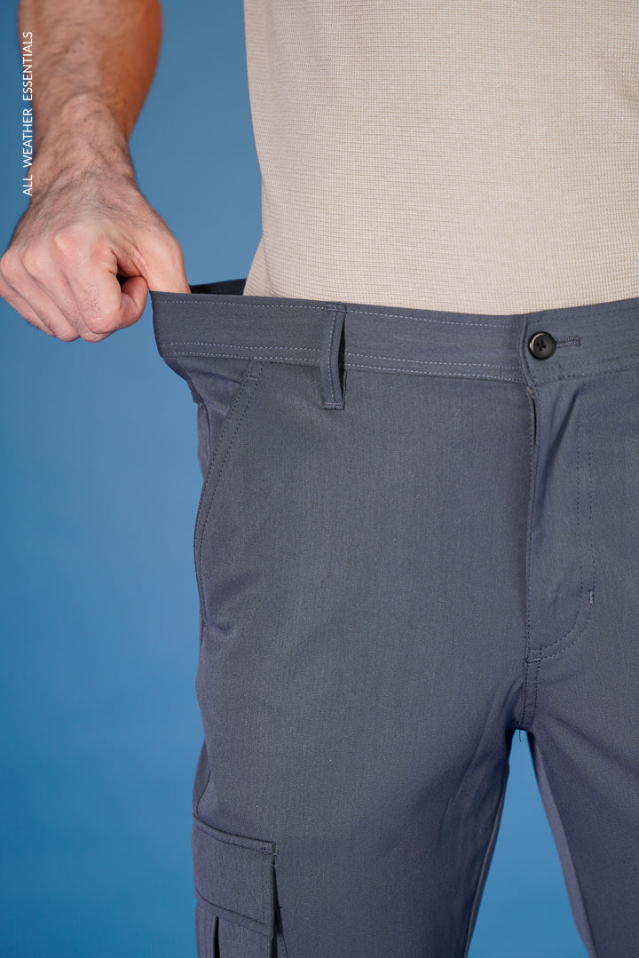 At The Pant Project, we're thrilled to introduce our Grey All Weather Essential Cargo Stretch Pants, meticulously designed for the adventurous and style-conscious. Made from a superior blend of polyester, viscose, and elastane, these cargo pants offer stretch comfort for all-day wear, combined with smart water and stain repellent technology, making them ideal for every season.