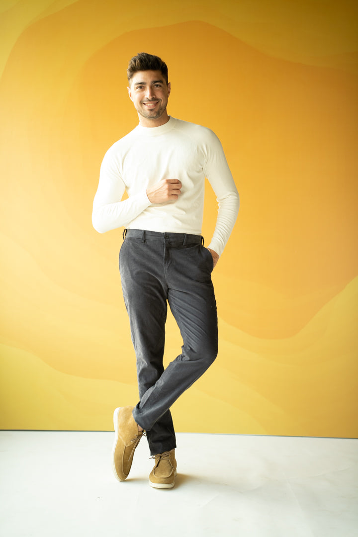 Crafted using a rich blend 98% Cotton & 2% Lycra to give you all-day comfort-wear with added stretch to take you from day to night in semi-formal style. Our model in the images wears a Slim Fit.