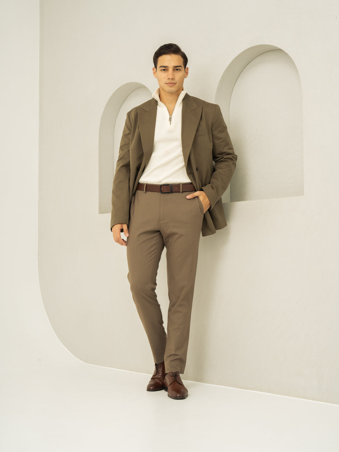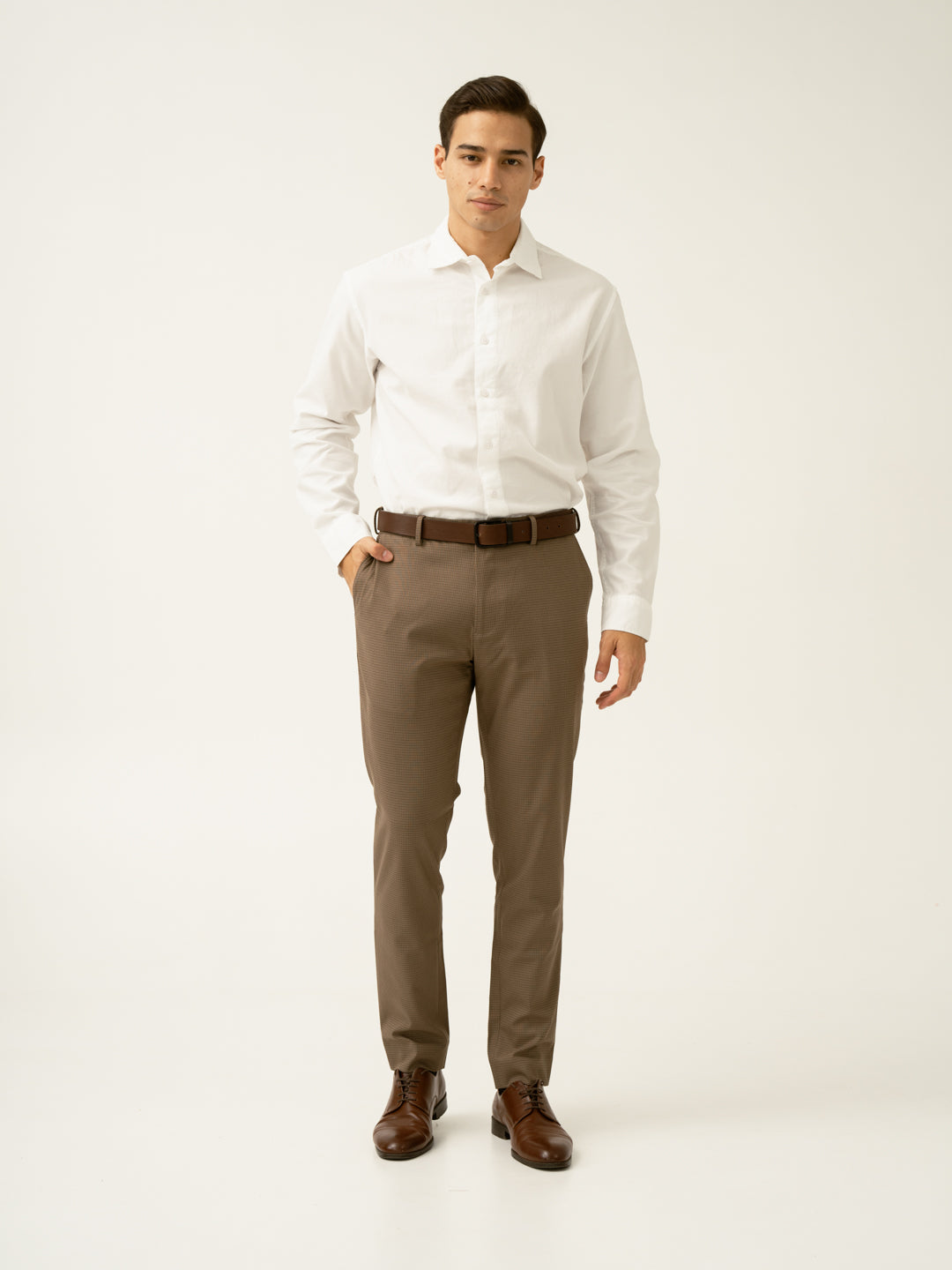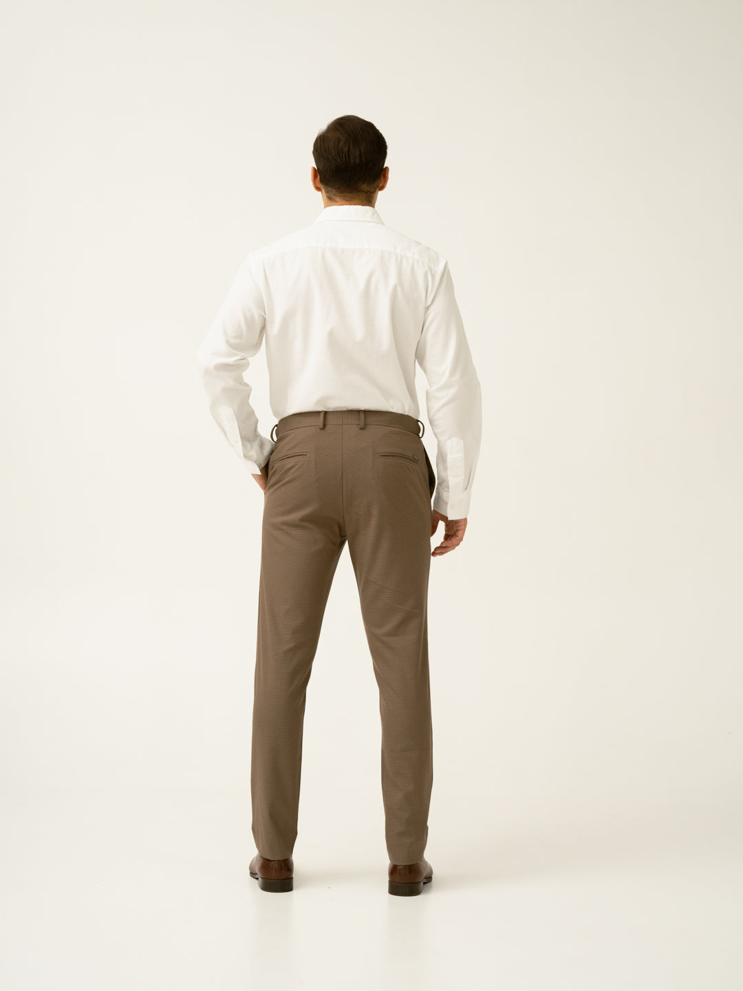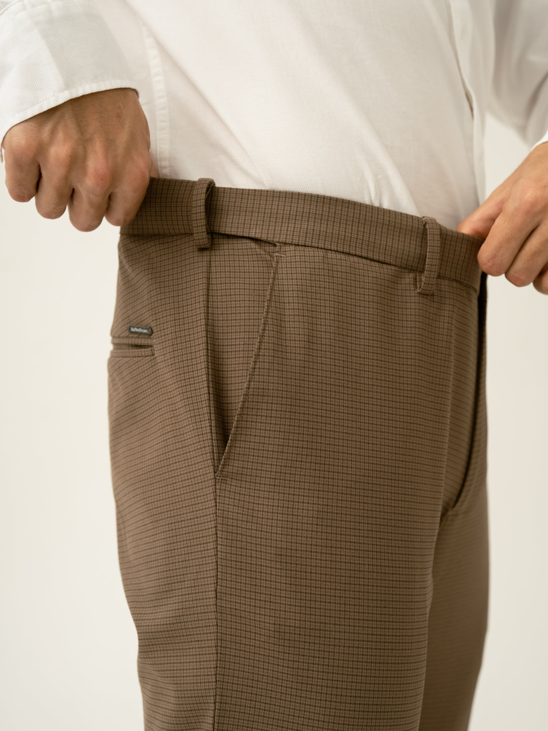 "Refined with a hint of warmth, the Hazel Brown Micro Checks Slim Fit Stretch Formal Trousers redefine business casual. These brown stretchable formal trousers feature 4-way stretch, a FlexTech waistband, and wrinkle-resistant fabric for unmatched comfort. The micro-check pattern adds subtle depth, making them versatile for work, travel, or weekend plans. Lightweight and breathable, they keep you looking sharp without compromising on ease. Whether you're presenting in the office or stepping out for drinks, these trousers bring effortless sophistication to any setting.