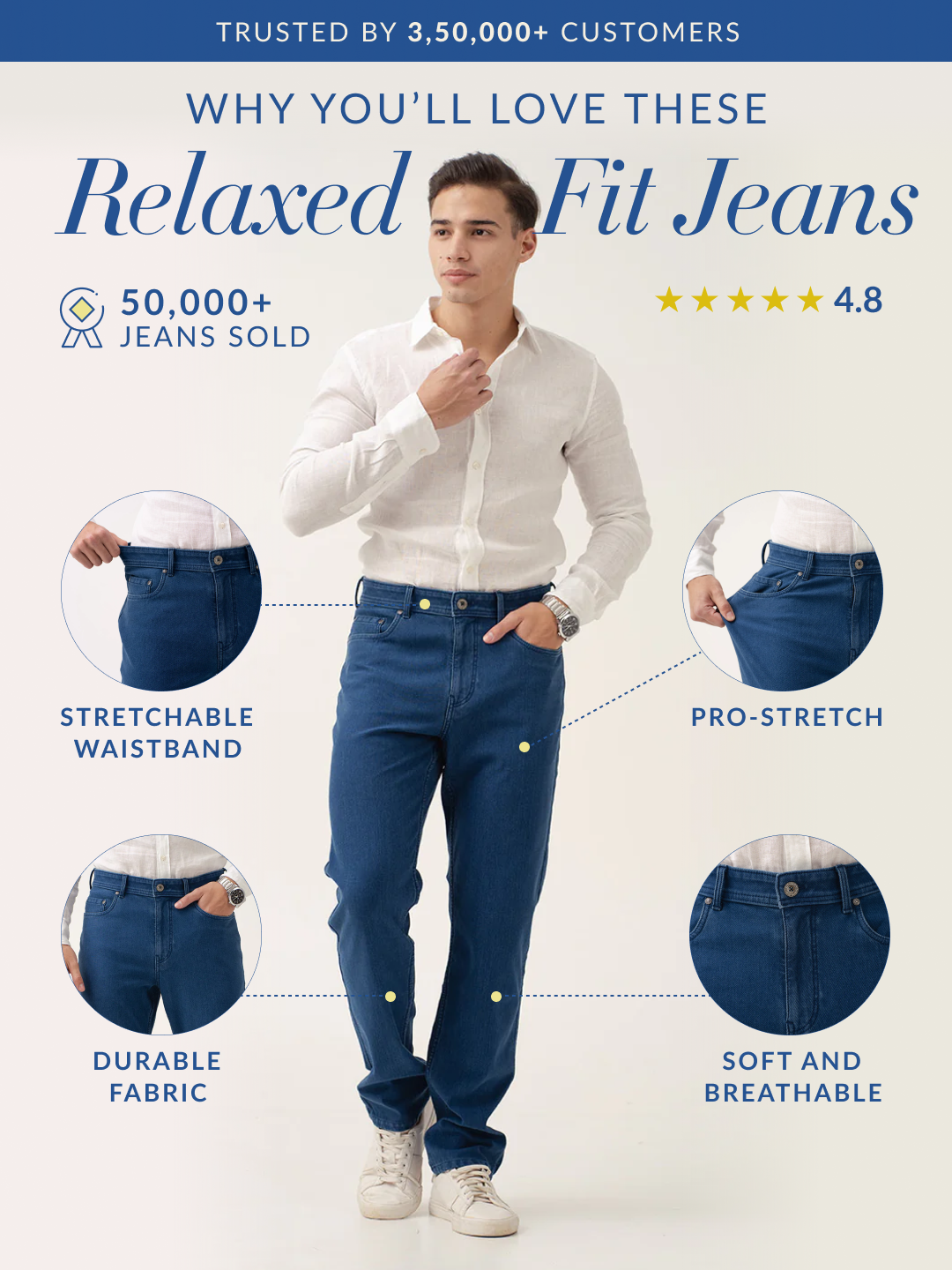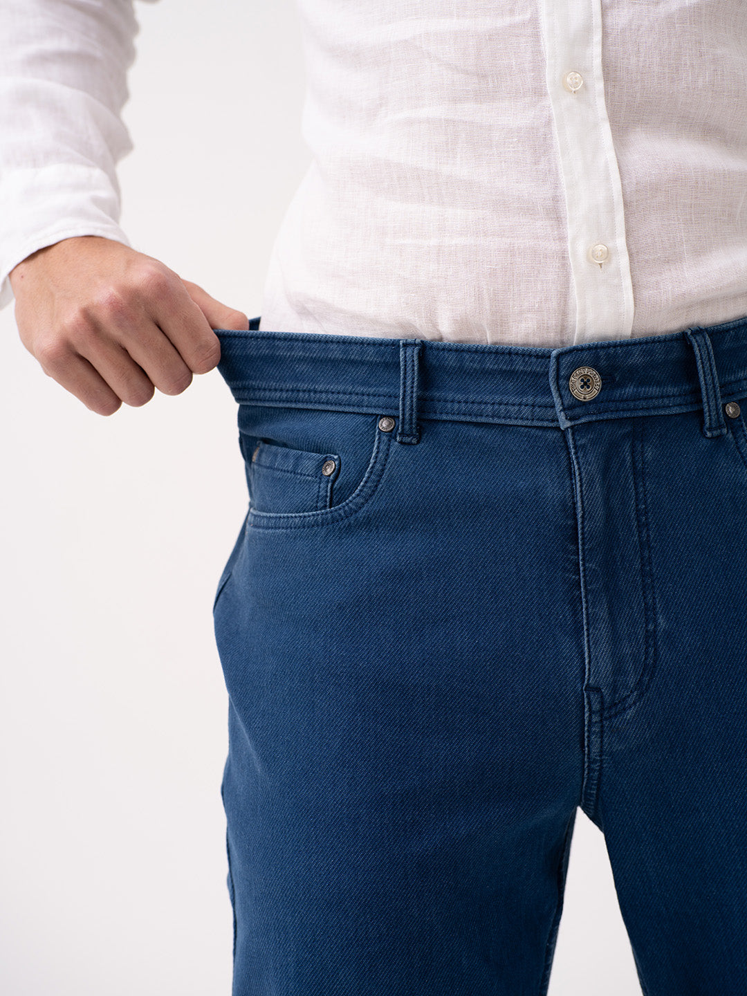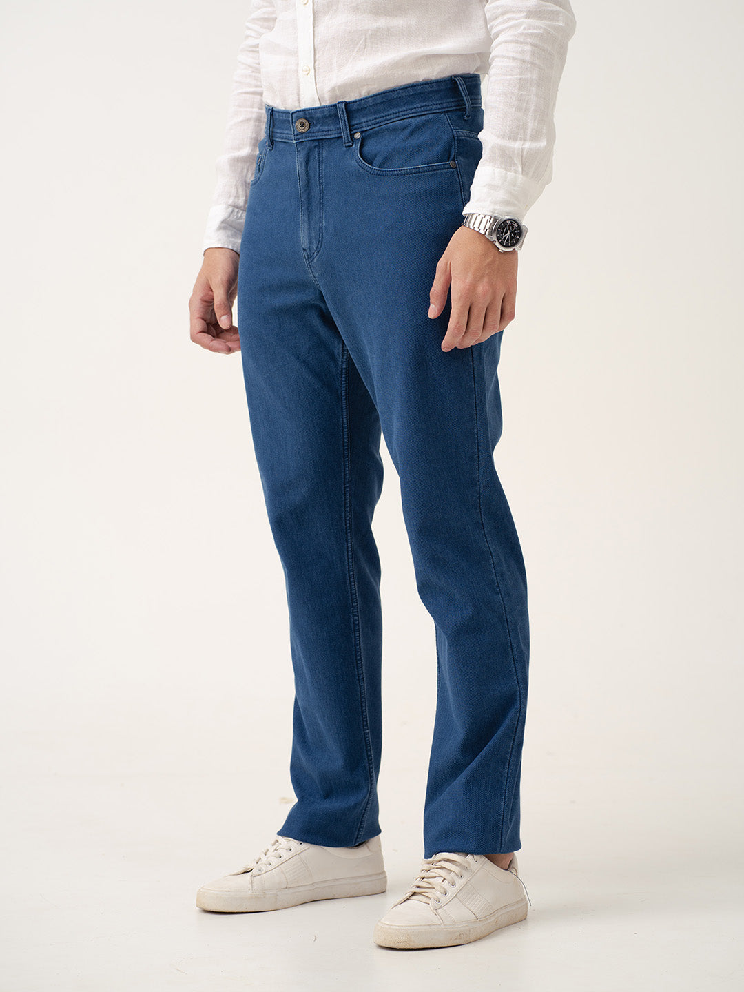 These horizon blue stretchable relaxed fit jeans are built for movement and everyday comfort. The pro-stretch fabric ensures flexibility, making them perfect for an active lifestyle. With a relaxed fit and a fresh blue wash, they offer a timeless yet contemporary appeal. Designed to evolve with every wear, these jeans mold to your body while developing distinct fades and creases. Whether styled with a polo or a casual tee, these horizon blue relaxed fit jeans for men provide a reliable blend of comfort and effortless style, making them an essential wardrobe staple.