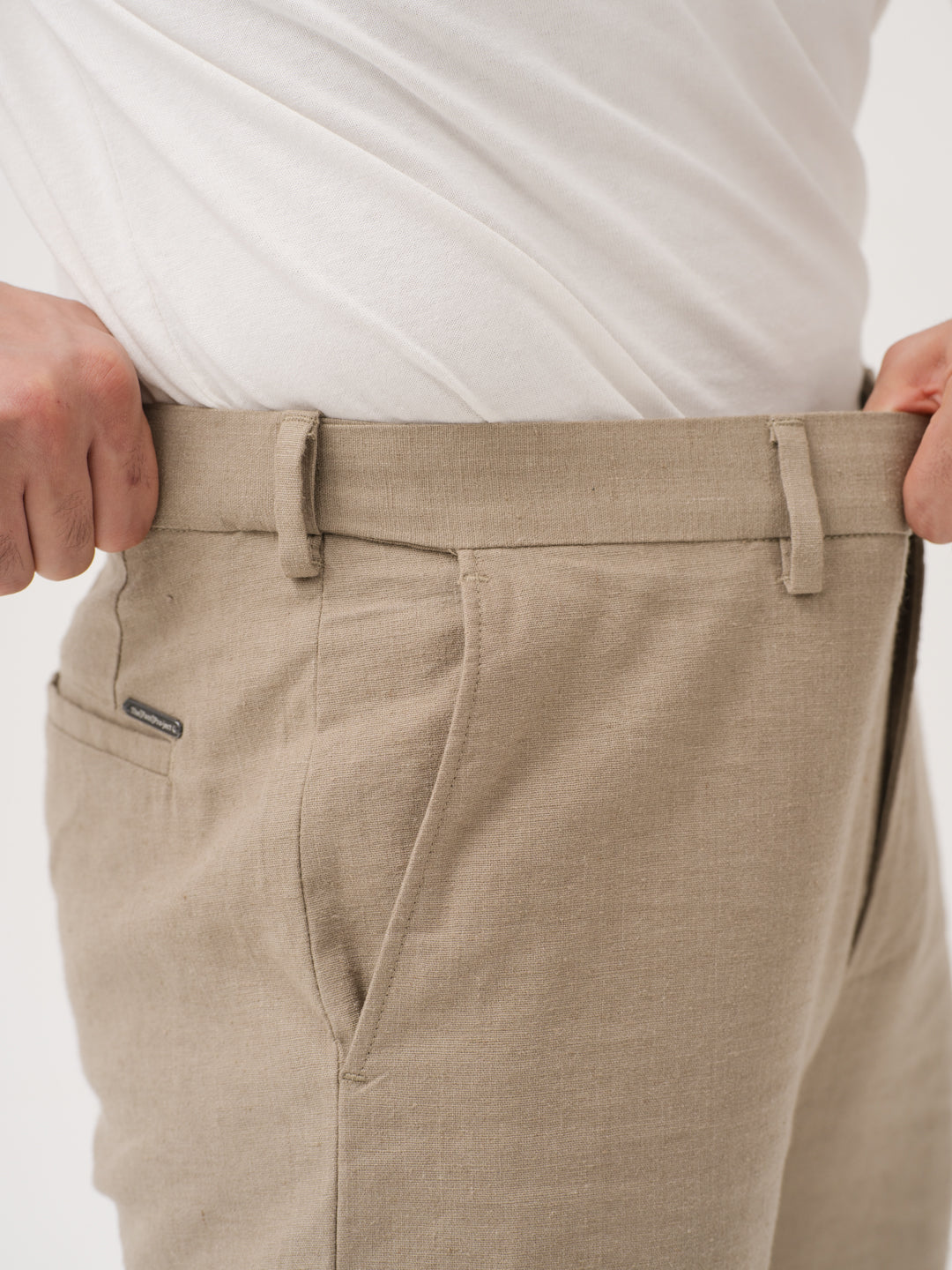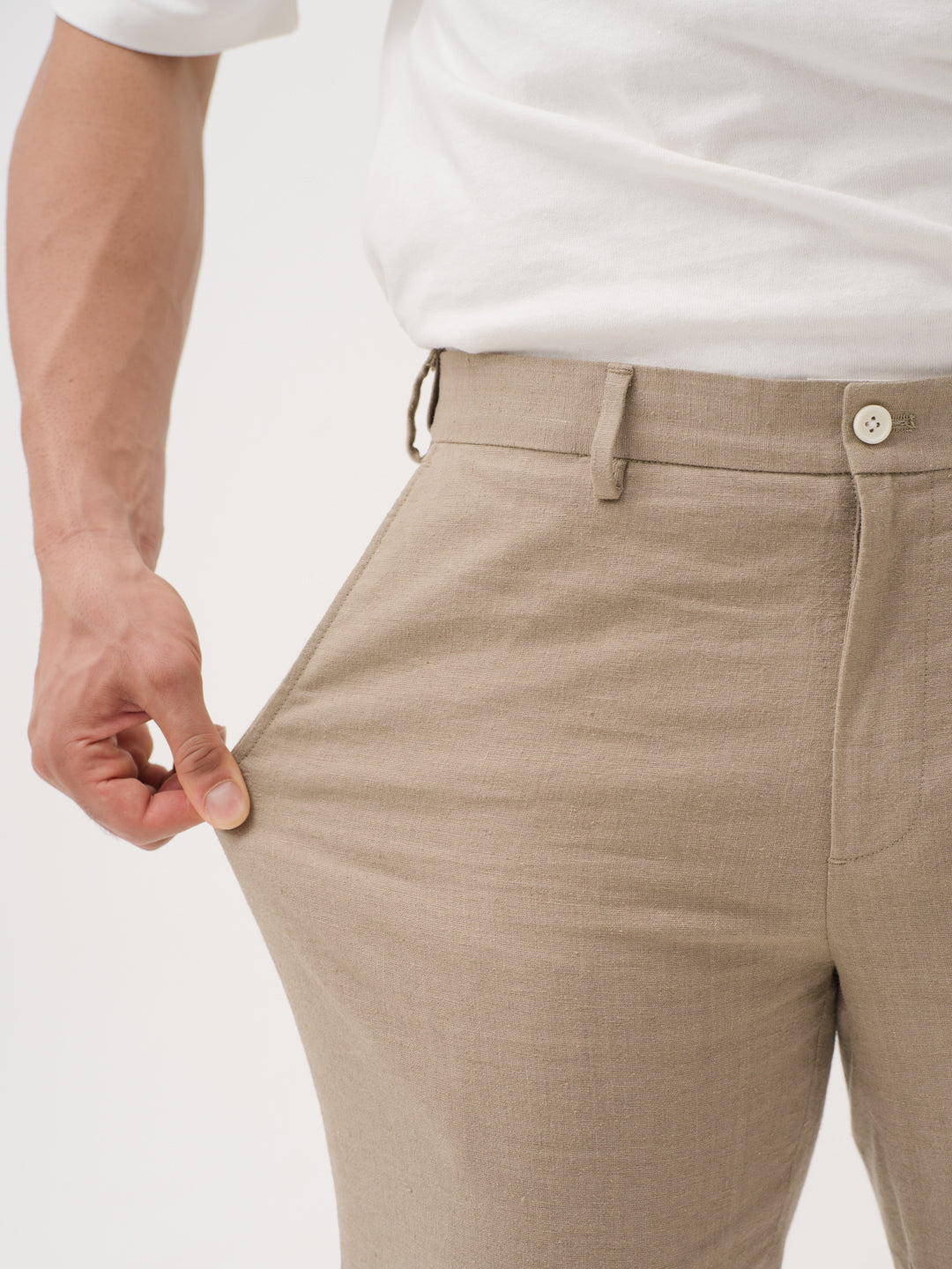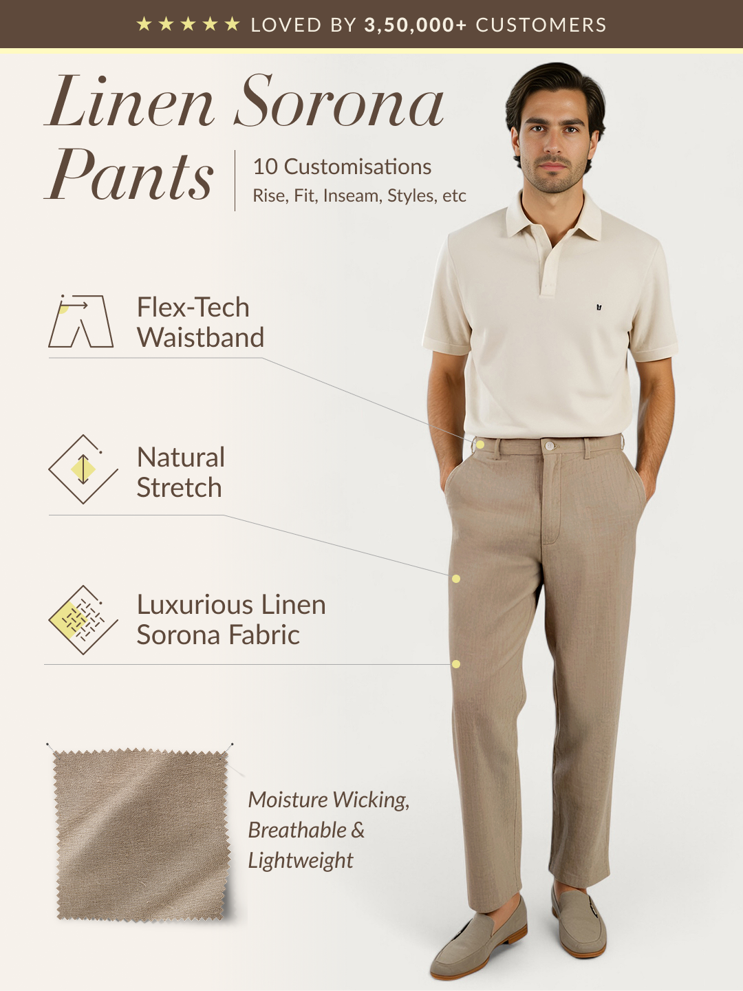Think of Linen Sorona as the grown-up, cousin of your classic linen pants. Still light, breezy, and breathable perfect for Indian weather but now with real staying power. Crafted from a premium 69% Linen and 31% Sorona blend, it doesn’t wrinkle at the first sign of movement or lose shape after a long day. Sorona adds stretch, recovery, and durability so your pants move with you, resist creases, and stay polished from AM to PM. It’s the comfort of linen with the brains of performance-wear. You’ll rethink all your other trousers.