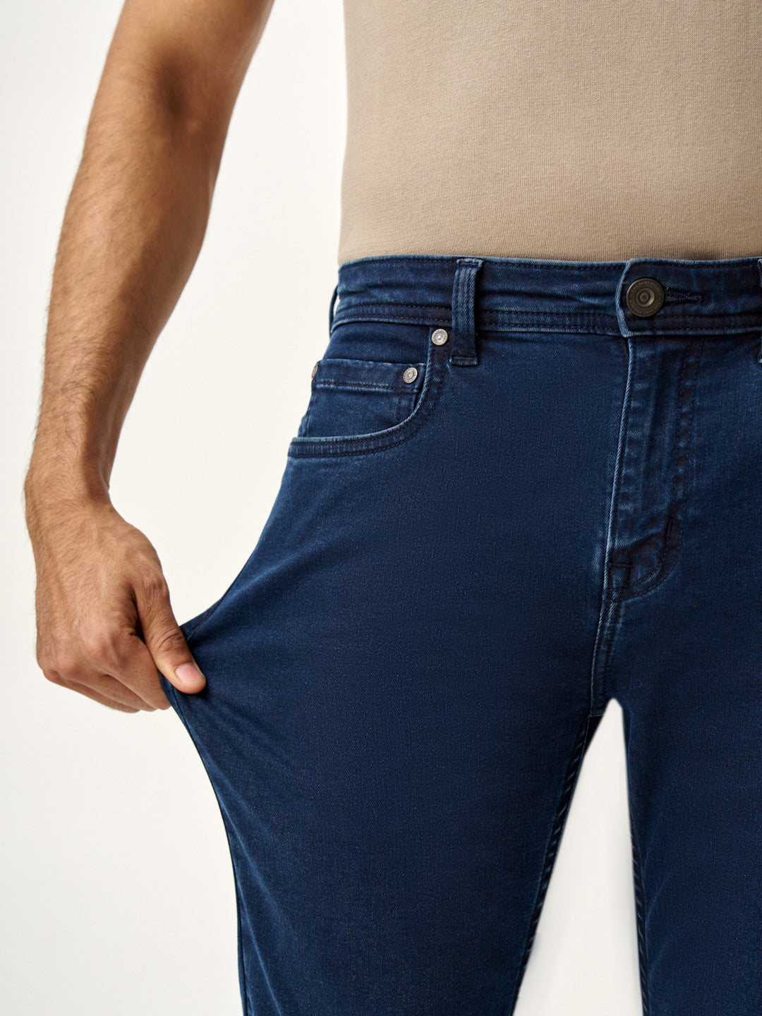 These indigo blue stretchable slim fit jeans are designed to evolve with you, with every crease and fade capturing your journey. Made from power-stretch fabric, they offer flexibility and comfort that lasts all day. The rich indigo wash adds a timeless touch, making them perfect for work, weekends, and everything in between. Whether you’re on the move or taking it easy, these jeans move effortlessly with you. Upgrade your wardrobe with these indigo blue slim fit jeans for men, built for style, comfort, and limitless possibilities.