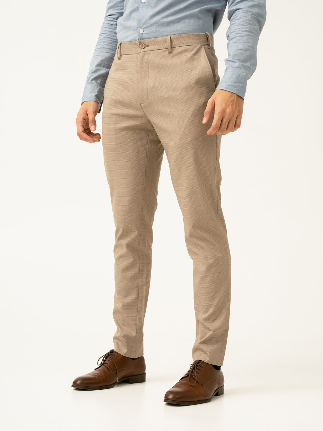 Khaki Checks Slim Fit Stretchable Formal Trousers | Lightweight & Breathable Formal Trousers With 4 Way Stretch