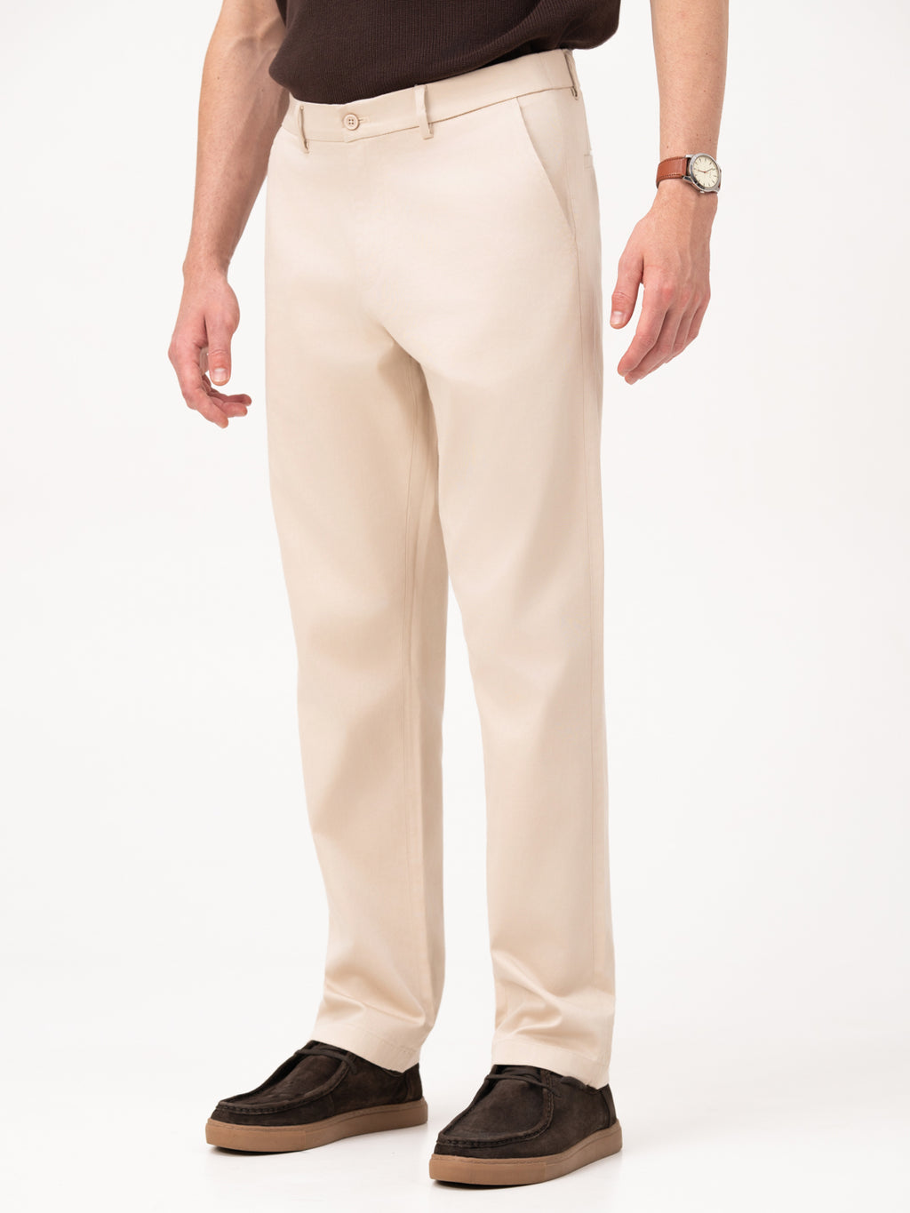 Lumora Cream Relaxed Fit Stretch Chinos with water repellent technology bring elevated function to refined style. These Lumora Cream Relaxed Fit Chinos for men are crafted with a cotton-stretch fabric that feels breathable and looks sharp all day. The Nano Teflon™ finish adds an invisible layer of protection from spills, stains, and drizzle effective for up to 30 washes. A hidden stretch waistband adds a layer of ease without compromising fit. These cream chinos for men offer a sophisticated look with performance details, making them ideal for everything from workdays to weekend outings, rain or shine.