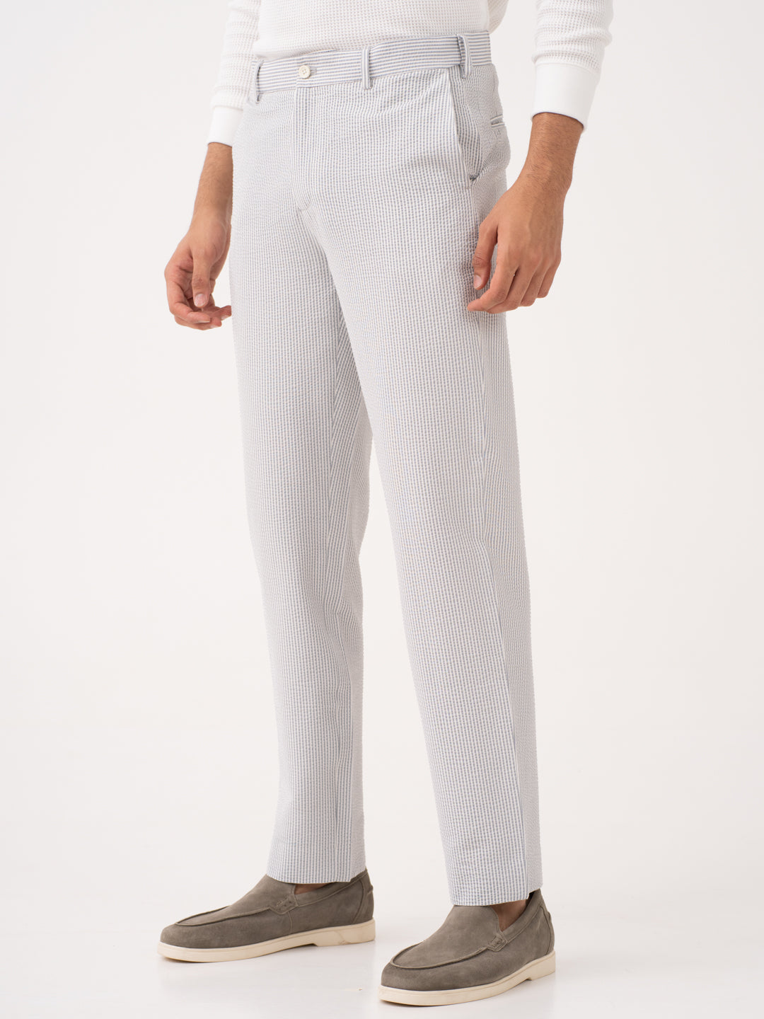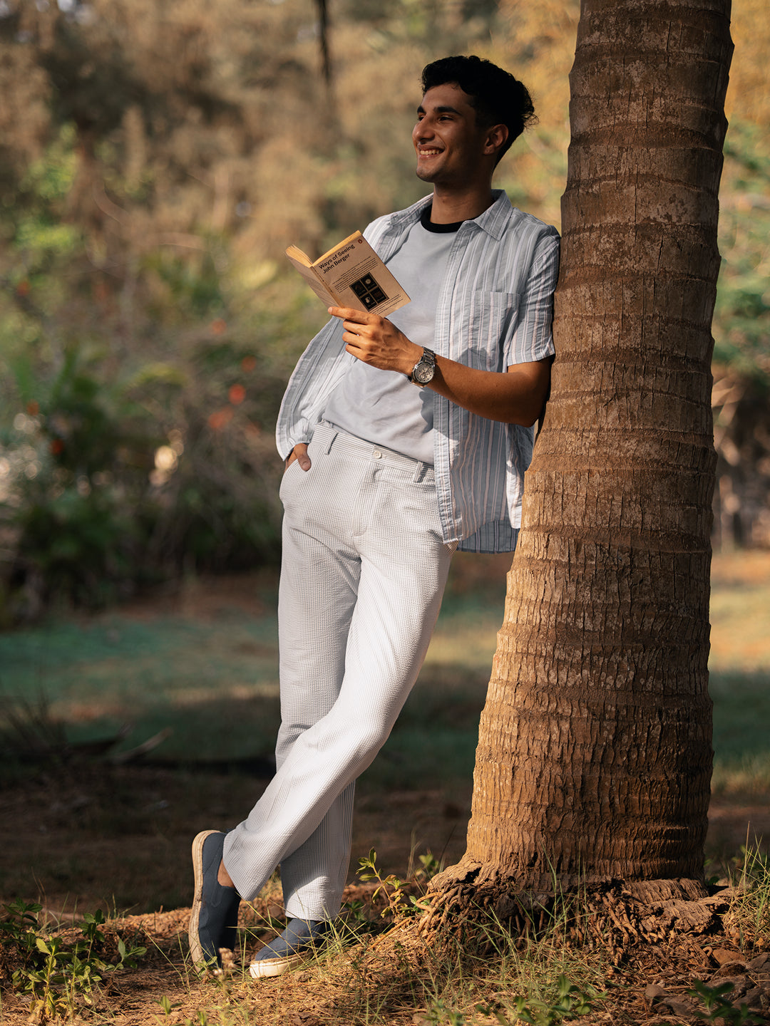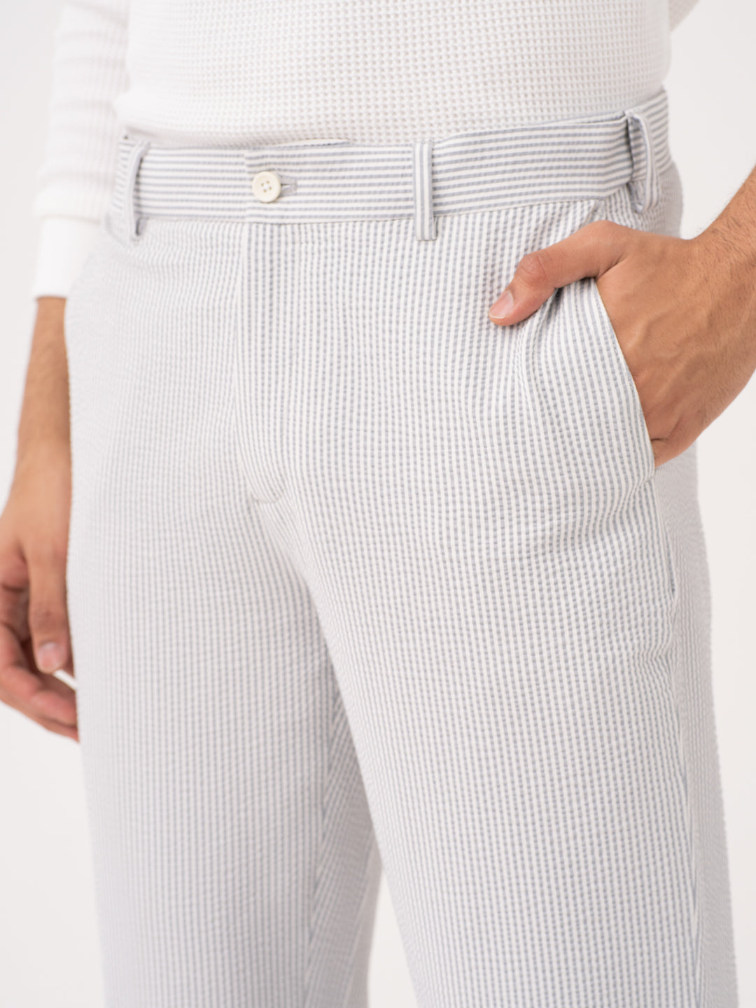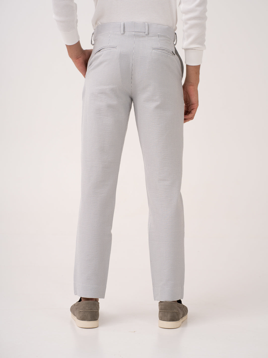 Soft on the eyes, sharp on the fit. The Luna Grey Stripes Seersucker Pants is summer’s quiet luxury—airy, effortless, and cool without trying too hard. Its signature puckered texture keeps the fabric lifted (and your skin breathing), while the subtle grey stripes do all the heavy style-lifting. These Luna Grey stretchable seersucker trousers come with built-in stretch, wrinkle resistance, and moisture-wicking magic, so you’re ready from coffee runs to candlelit dinners. Think minimalism, but make it functional. Pair with crisp whites, dusty blues, or even that tee you “borrowed” and never returned. The vibe? Calm, collected, and classically good-looking—just like you.
