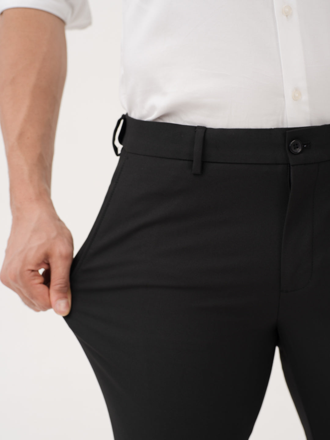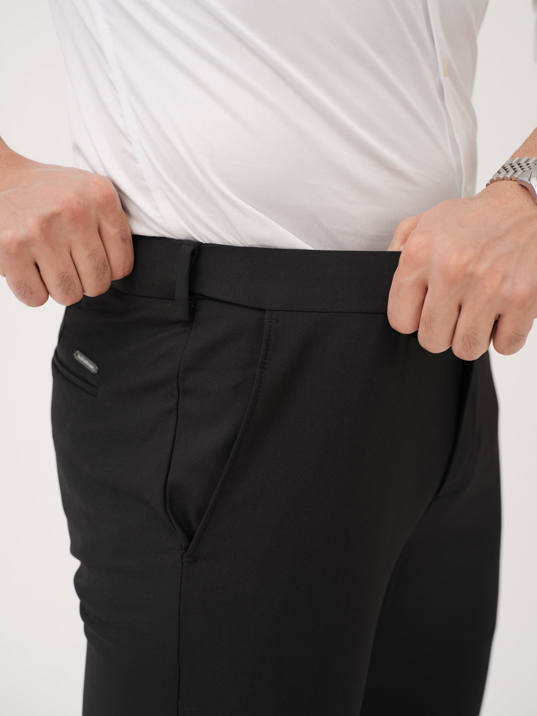 For the ultimate in luxury and comfort, the Monolith Black Luxury Twill Relaxed Fit Stretch Formal Pants are the perfect choice. These Inferno Black Twill Luxury Stretch Formal Trousers are made from high-quality twill fabric, offering a sleek black look with just the right amount of stretch for all-day comfort. Ideal for both professional settings and evening events, these pants offer the perfect mix of style and flexibility. Looking for black stretchable formal trousers with a touch of sophistication? These pants are sure to add a sleek edge to your wardrobe.