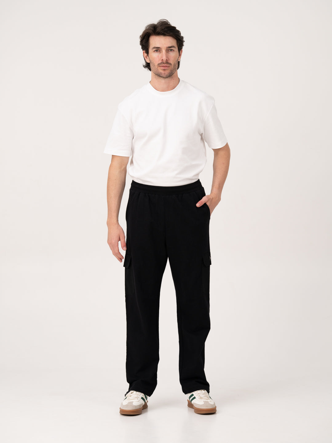 Crafted using a premium blend 100% Cotton. Our model has a 34 waist and is wearing size M in Relaxed Fit.