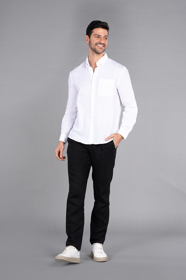Crafted using 100% Luxurious Linen to give you lightweight, breathable comfort in every wear. Our model in the image wears a Slim Fit.