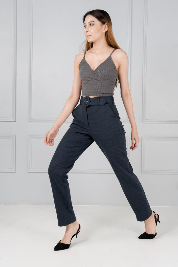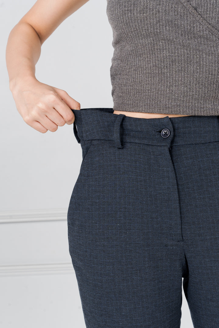 At The Pant Project, we're excited to introduce the Navy Blue Checks Power-Stretch Pants for women, a blend of elegance, comfort, and versatility. Crafted from a sophisticated mix of polyester, viscose, and elastane, these pants are designed to provide soft-stretch comfort, perfect for both professional settings and casual outings. The navy blue checks pattern offers a subtle yet striking visual appeal, making these pants a unique addition to any wardrobe.
