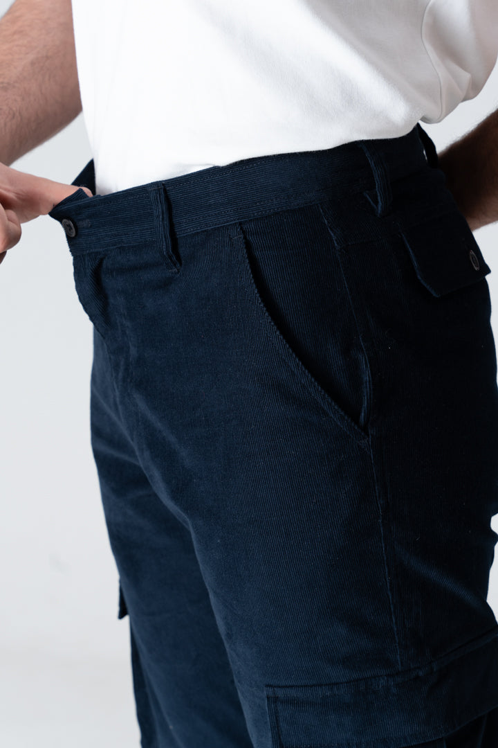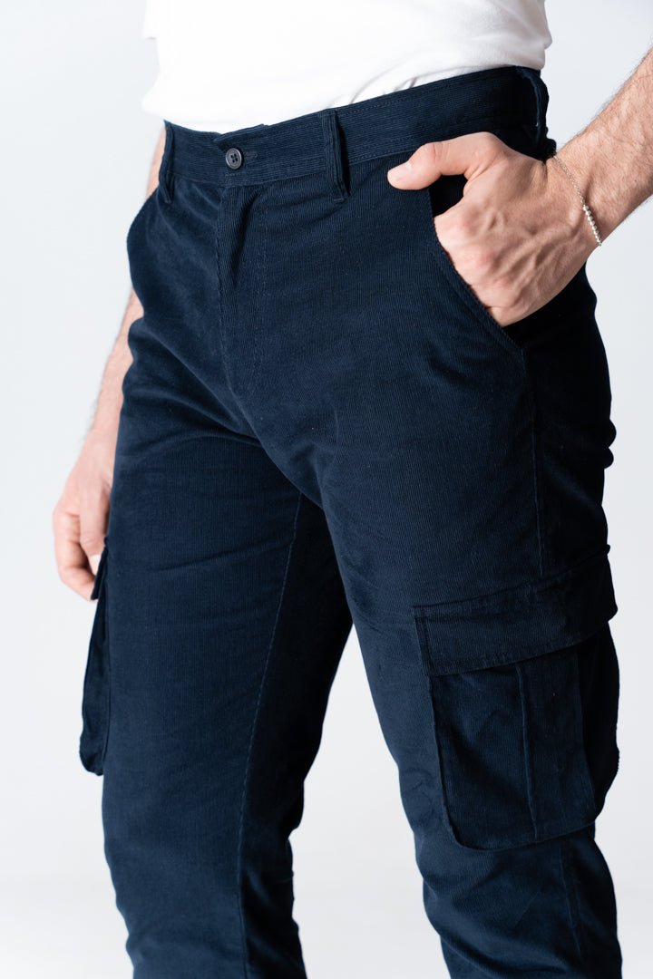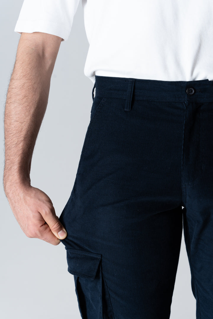 The deep navy hue, combined with the textured corduroy, offers an elevated look, making these pants versatile for a variety of occasions. Whether you're aiming for a casual day out or a smart-casual setting, these cargo pants adapt seamlessly to your needs.