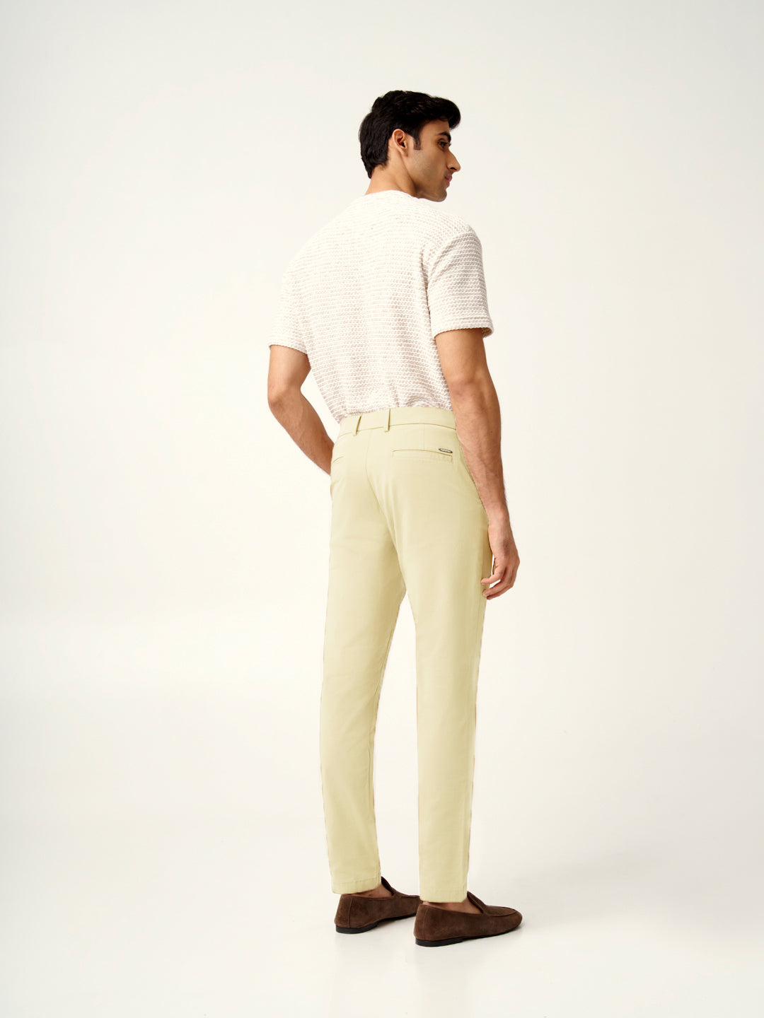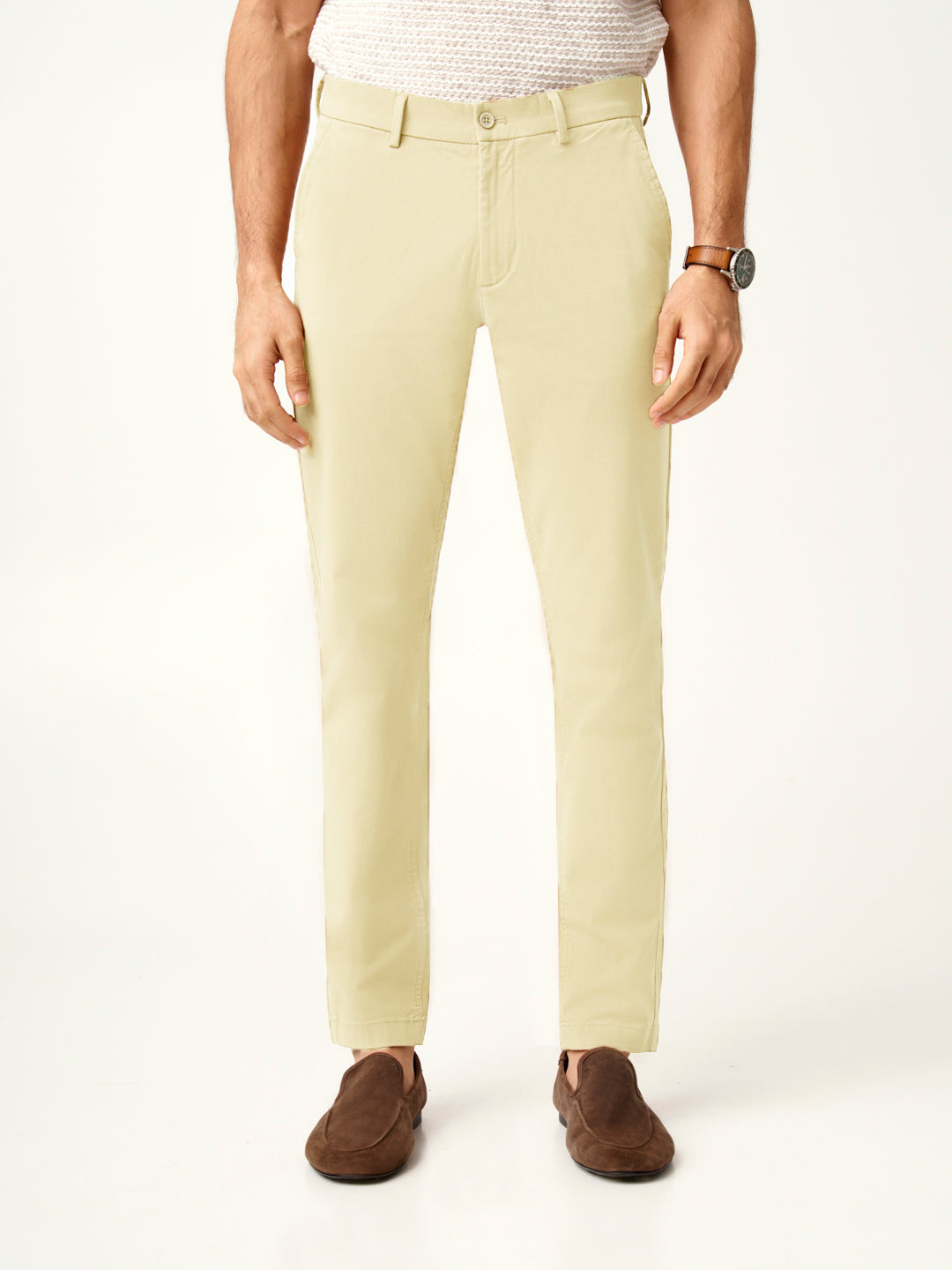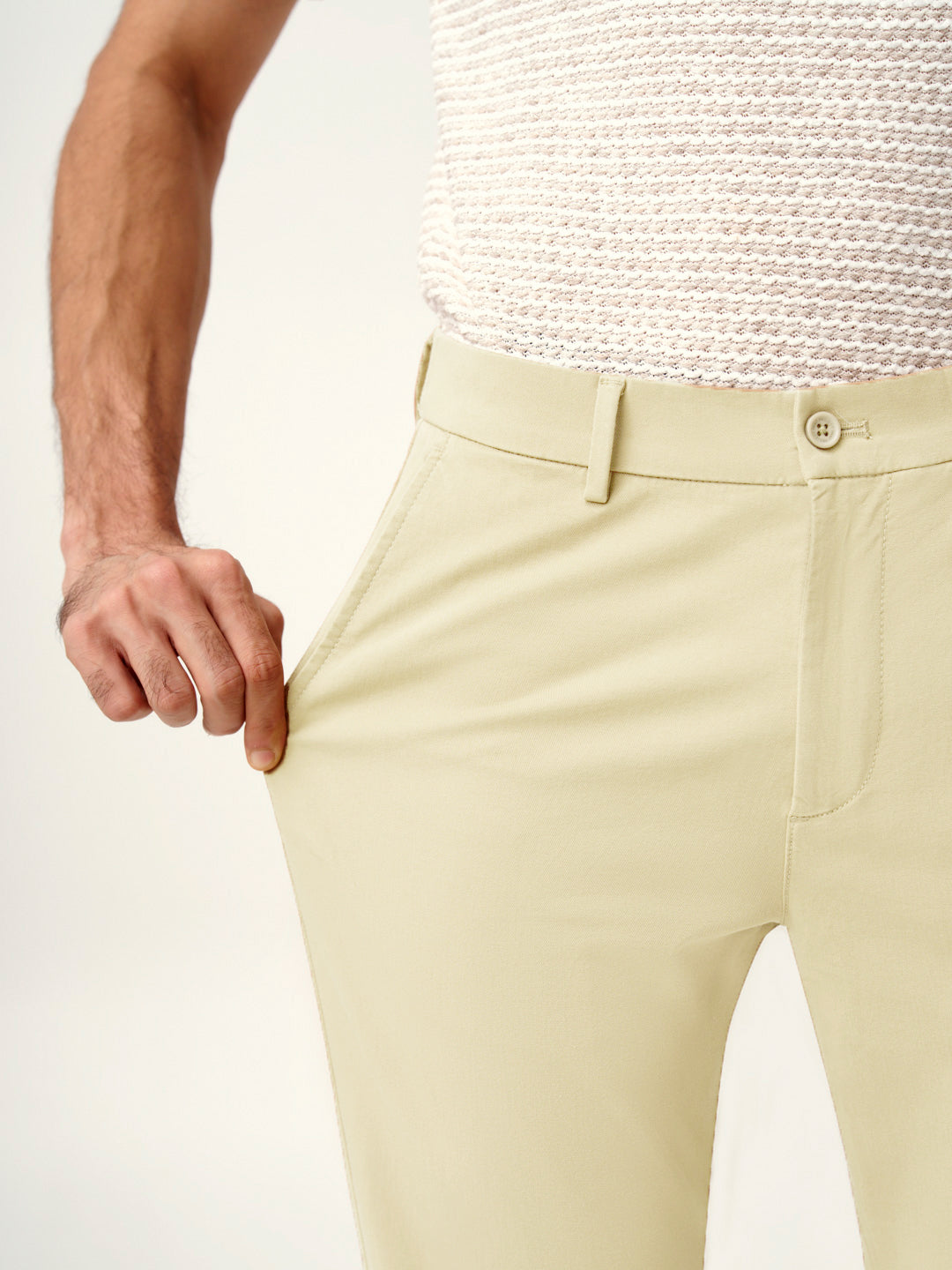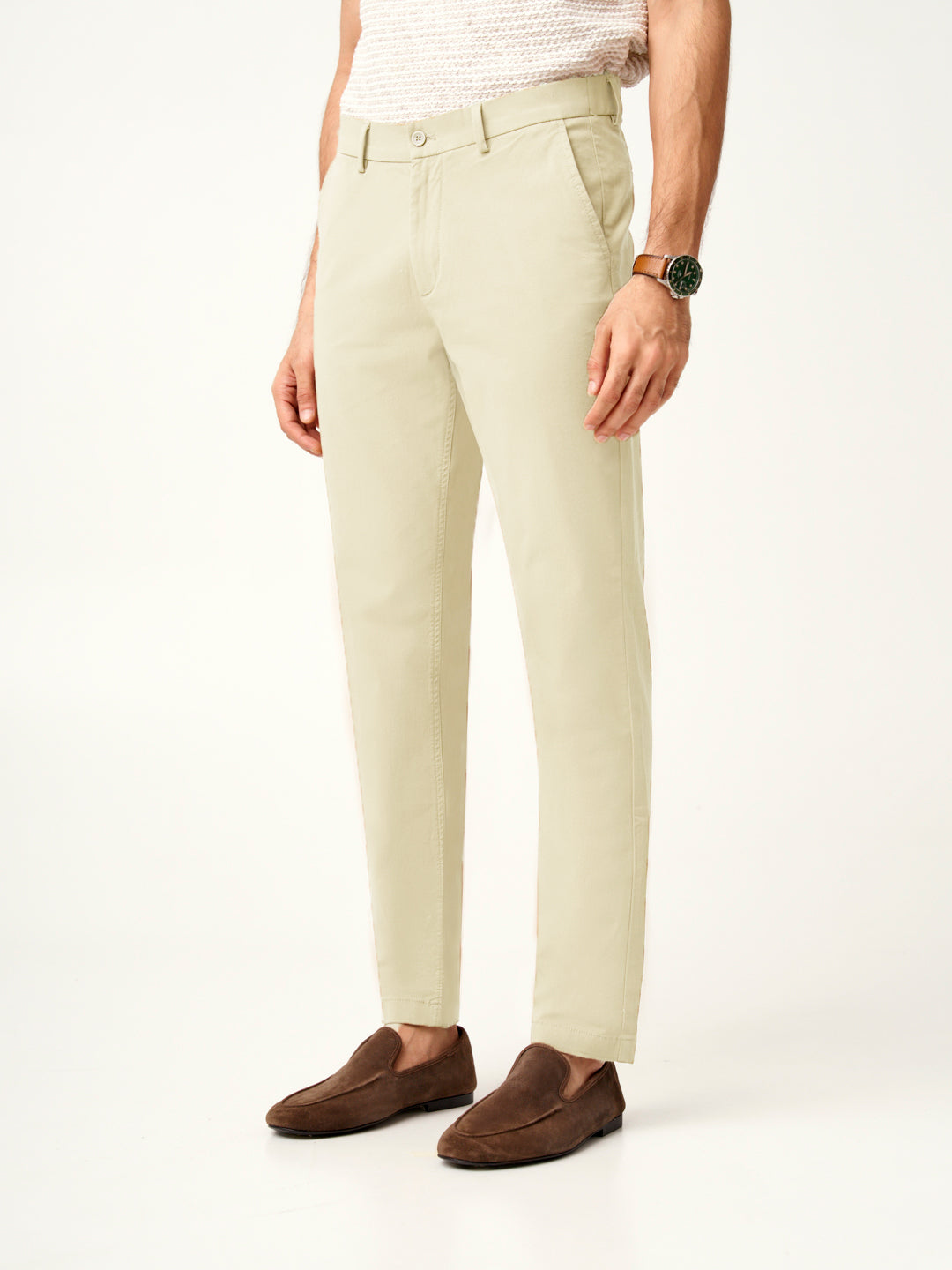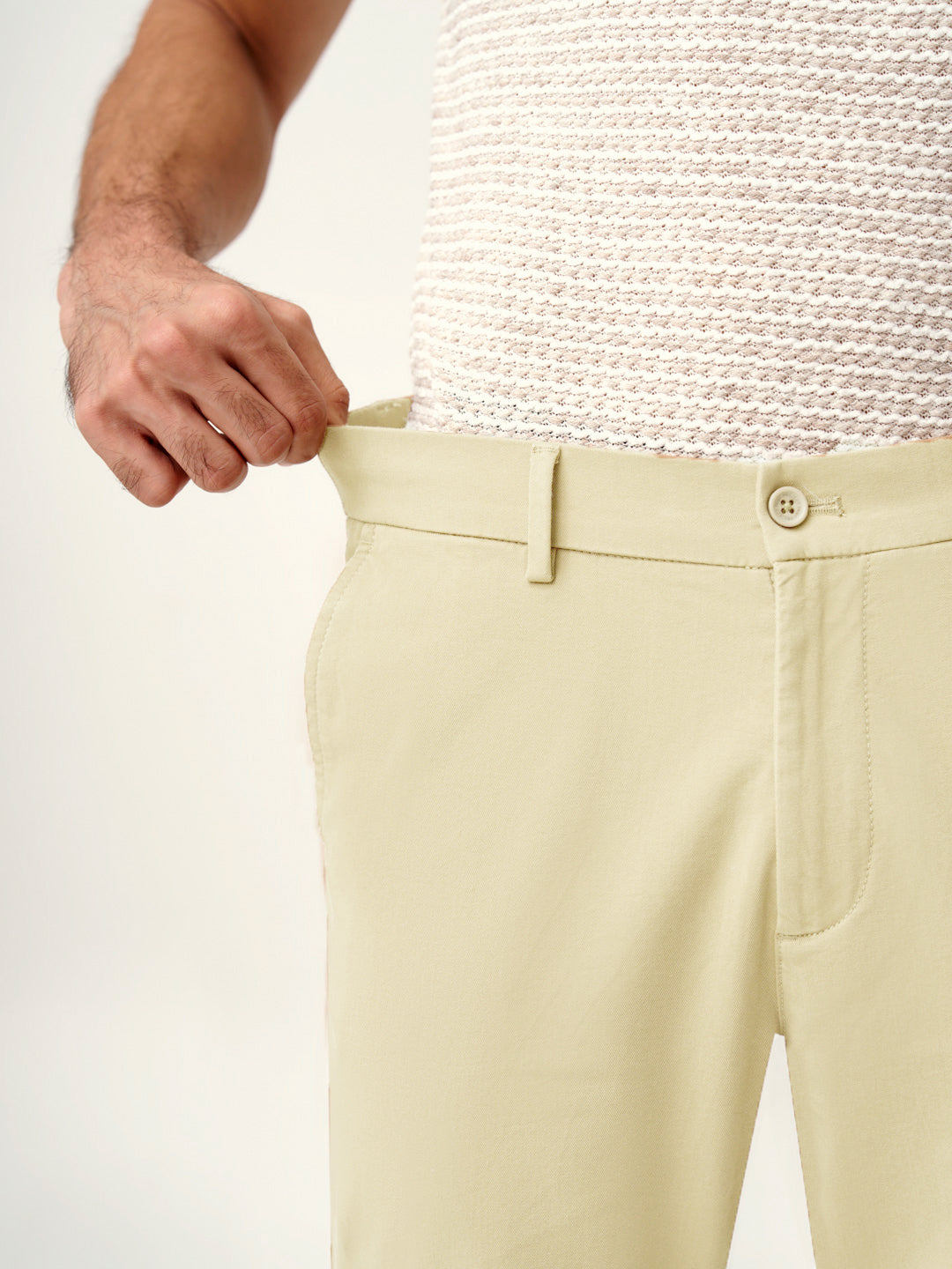 Opal Ecru Stretch Chinos are the fresh neutral your wardrobe didn’t know it needed. With their creamy off-white tone and modern cut, they bring a soft, elevated look to everyday outfits. Designed in breathable stretch-cotton, these ecru chinos for men are as comfortable as they are polished. Ideal for warm days, city strolls, or rooftop dinners — they feel easy but always look considered. Pair with pastel shirts, bold tees, or monochrome layers for a clean, contemporary vibe. These are light-coloured chinos that don’t demand effort — they just deliver style.