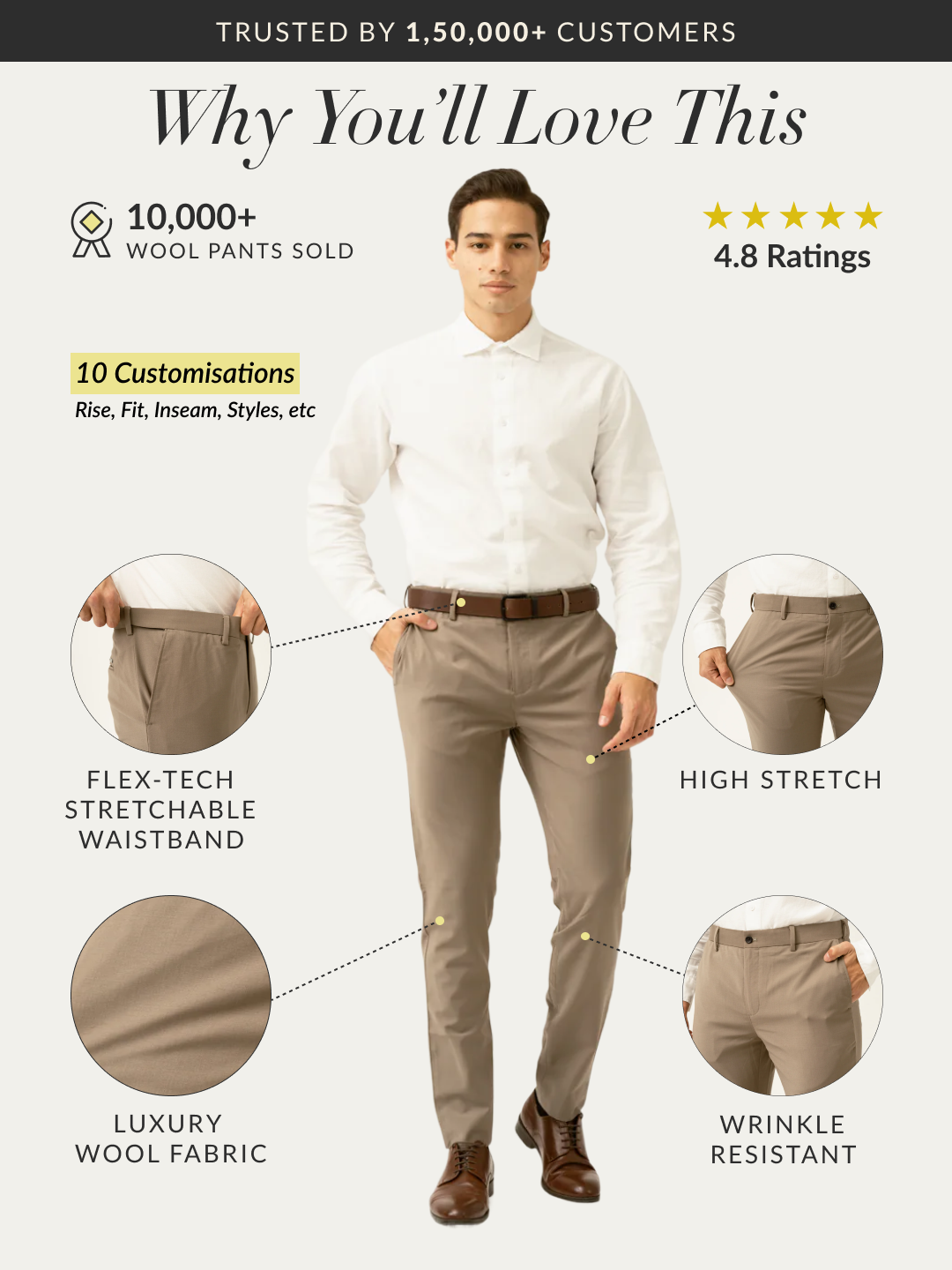 For all our custom-made pants we offer free alterations subject to T&C. We do not offer returns, exchanges or refunds on custom-made pants. The request for an alteration, exchange or return needs to be logged in within 14 days of delivery of the product. You can raise an alteration request by clicking here. and you can reach out to us via WhatsApp on 8657735200 if you need any additional assistance. Refer to our detailed Alterations and Returns policy for more information