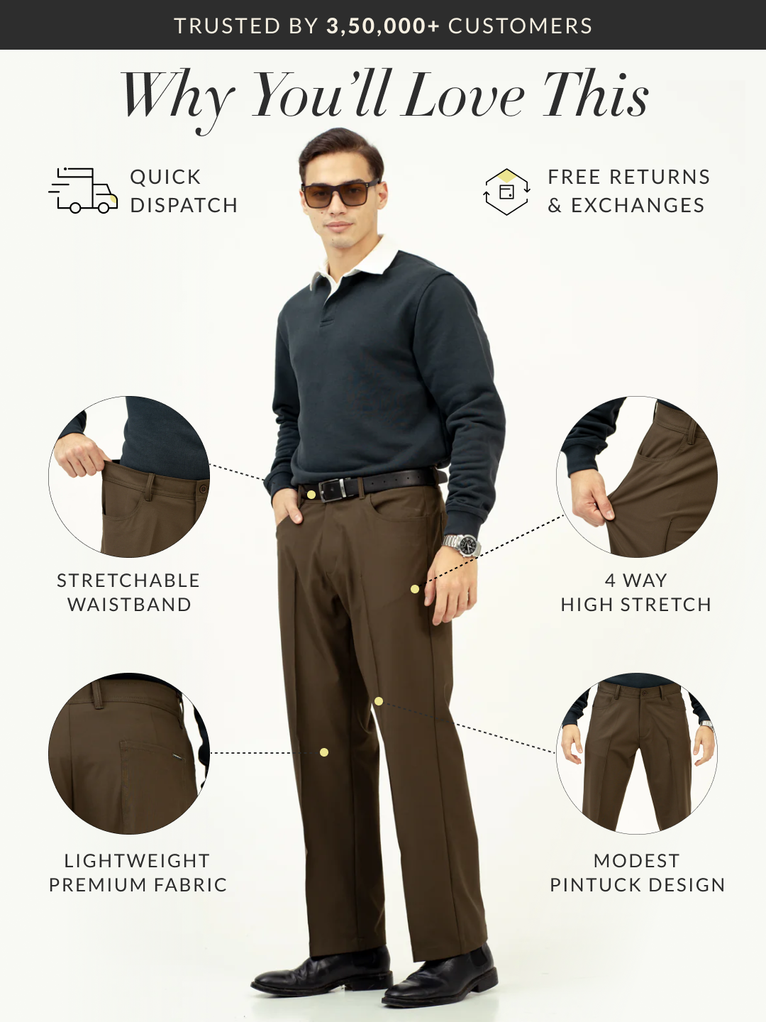 Stretchable Waistband: Adapts to your waist for a perfect fit.